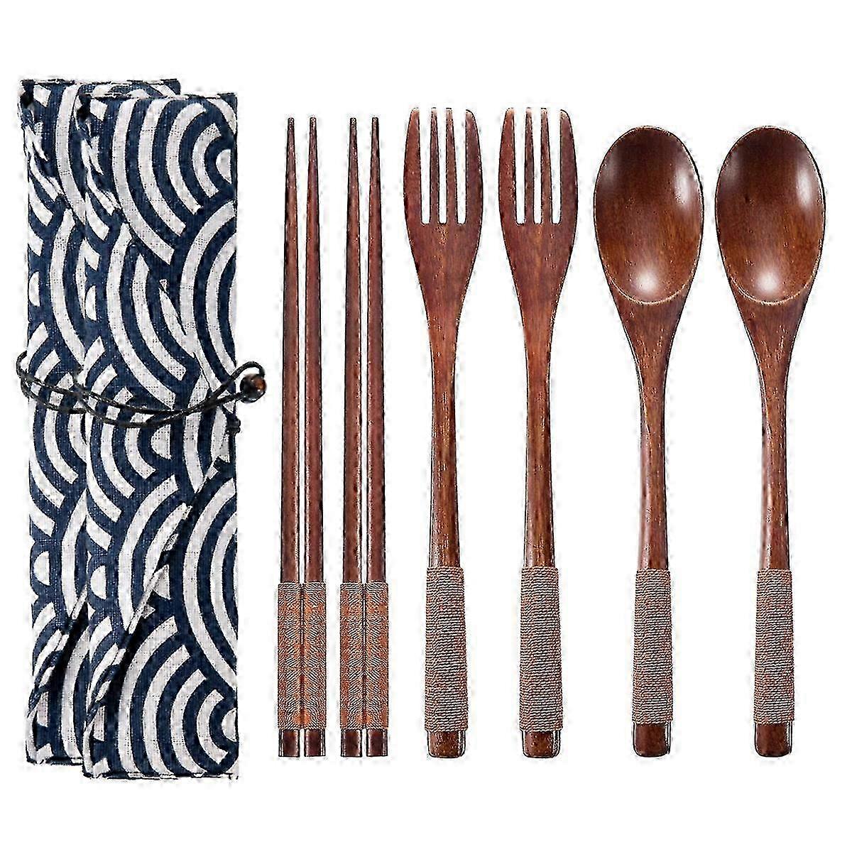 m Wooden cutlery 2 sets Wooden fork and spoon Chopsticks reusable cutlery set travel gear Tether cutlery set