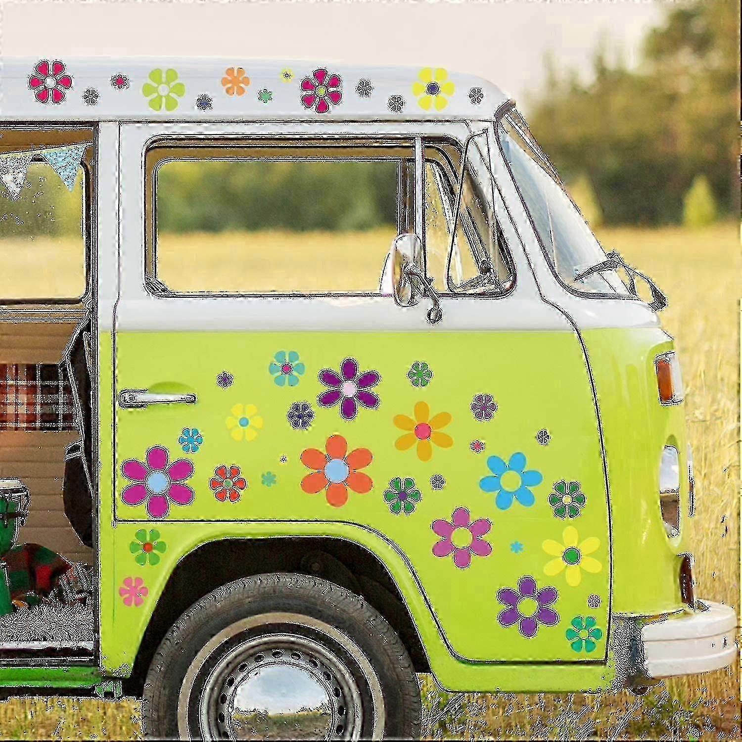 m 96pcs Hippie Flower Car Stickers, 60's Retro Daisy Decals for Party, Vinyl Multicolor Decorations