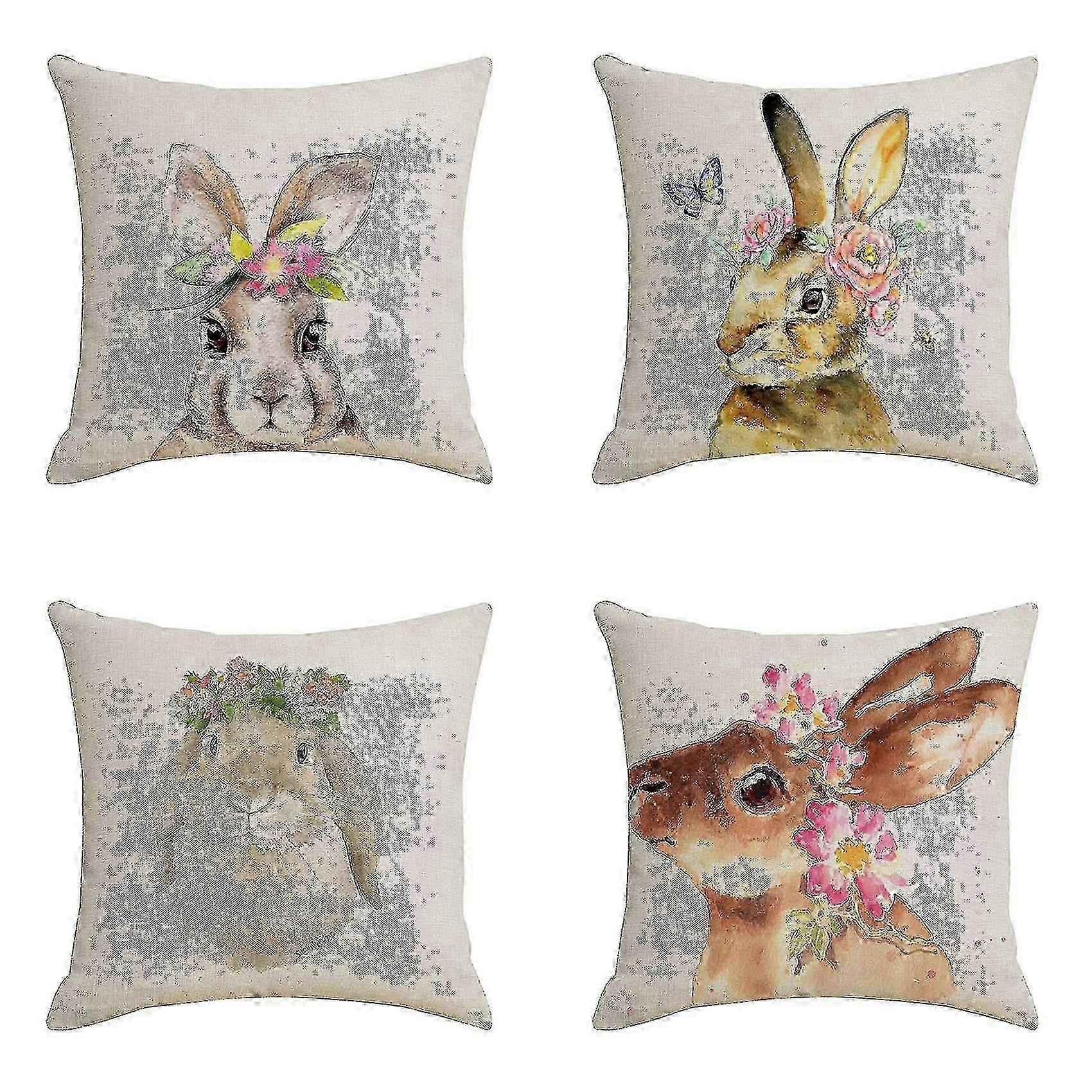 m 4pcs Easter Linen Pillowcase Easter Rabbit Print Decor Sofa 45x45cm