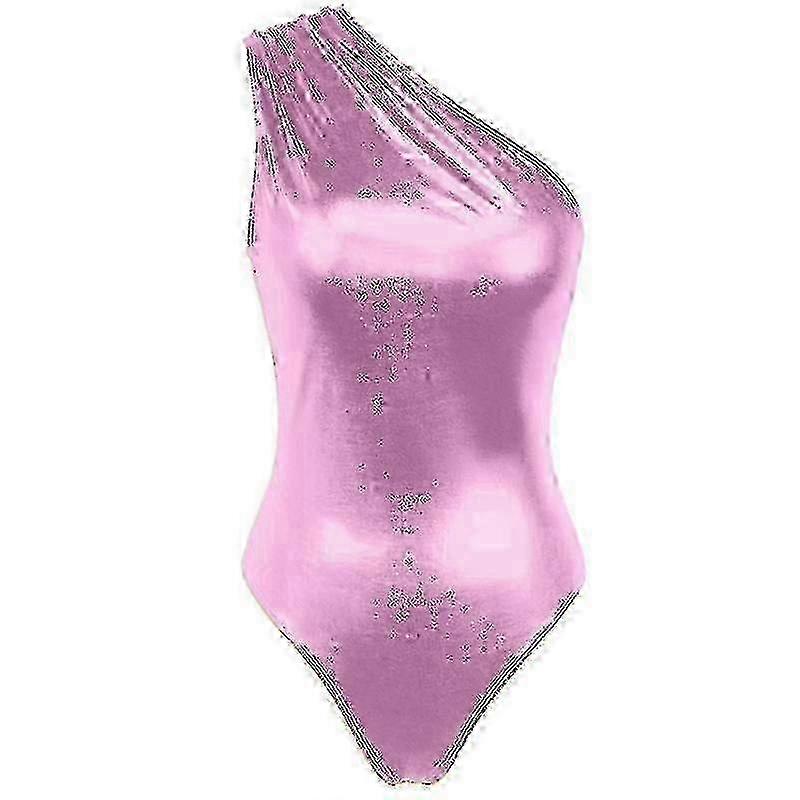 m "Women's Metallic Liquid One Piece Bodysuit One Shoulder Leotard Top"-2025-ss