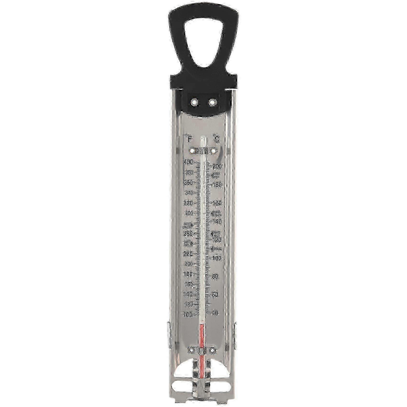 Stainless Steel Candy or Jelly or Deep Fry Thermometer with Pot Clip Attachment and Quick ReferenceCandy or Jelly or Deep Fry Thermometer, Stainless Steel, with Pot Clip Attachment and Quick Reference Tem Easy-to-read large temperature zones printed on unit - 6 zones include Deep Fry, Thread, Soft Ball, Hard Ball, Soft Crack and Hard Crack stages Rust-proof stainless steel solid construction, pot clip attachment holds thermometer in place, insulated handled does not retain heat Temperature ranges in Celsius and Fahrenheit - 90 Fahrenheit to 400 Fahrenheit (30 Celsius to 200 Celsius ) Dishwasher safe, Great for candy making, melting chocolate, yogurts, creams sauces, jams, and more Accurate and precise temperature readings are the necessary ingredient when creating candies and jellies to sweet bliss. With a quick reference temperature guide printed directly on the unit, this easy-to-read thermometer makes creating delicious treats simple and easy. Also designed for deep frying foods, an integrated secure clip attachment conveniently clips to the sides of pots to hold the thermometer in place for precise readings and perfectly prepared creations every time. From making Candy to French Fries, this thermometer features an insulated handle that doesn't retain heat. With solid, rust-proof stainless-steel construction, it's the perfect choice for a wide variety of cooking. When done using the thermometer, just place it in the dishwasher for quick and easy cleanup. colour: black Material: stainless steel Package Contents: 1 x Kitchen thermometer Note: Due to the light and screen setting difference, the item's color may be slightly different from the pictures. Please allow slight dimension difference due to different manual measurement.