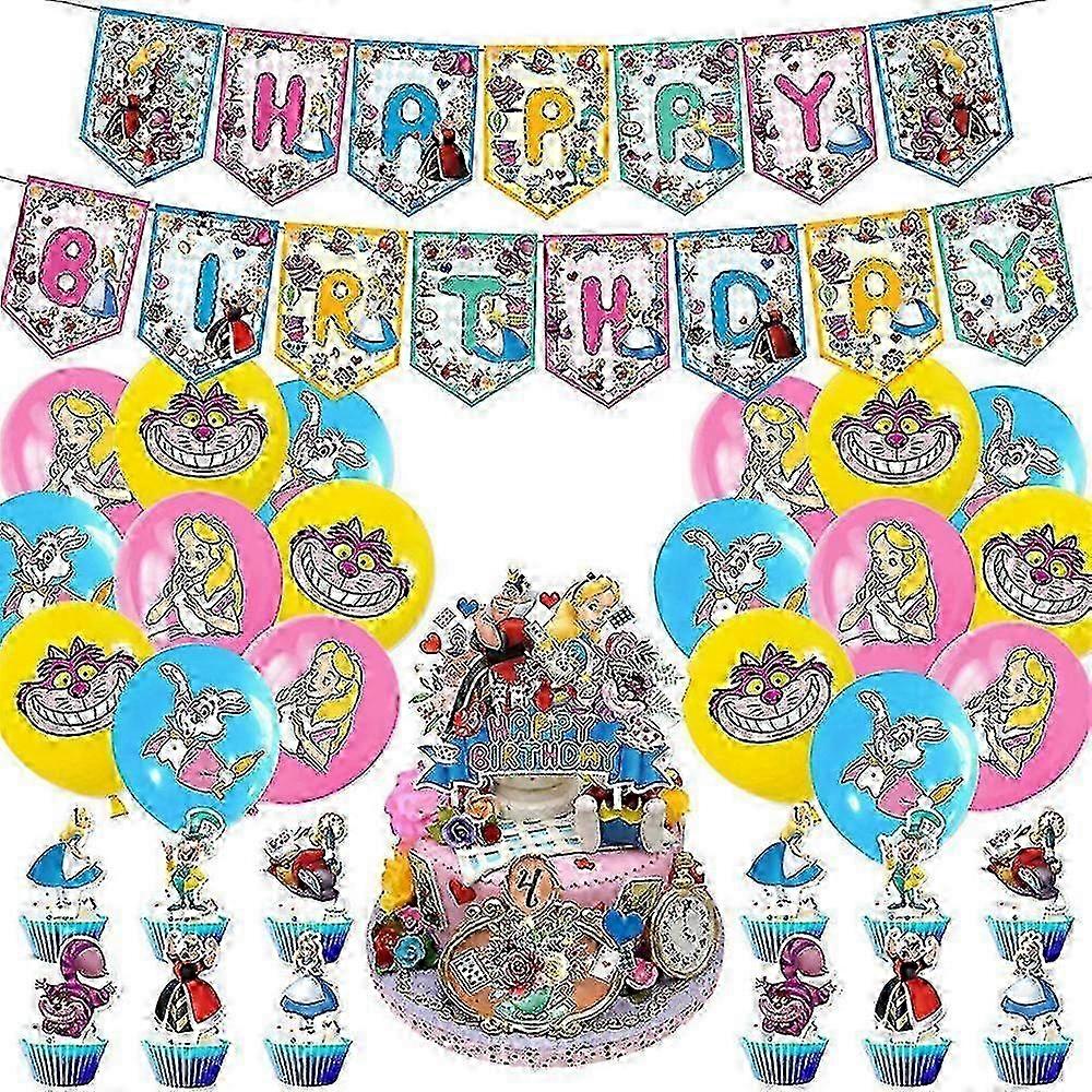 m Alices Adventure In Wonderland Cartoon Printed Kids Girls Birthday Party Supplies Kit Banner Balloons Cake Cupcake Toppers Decoration