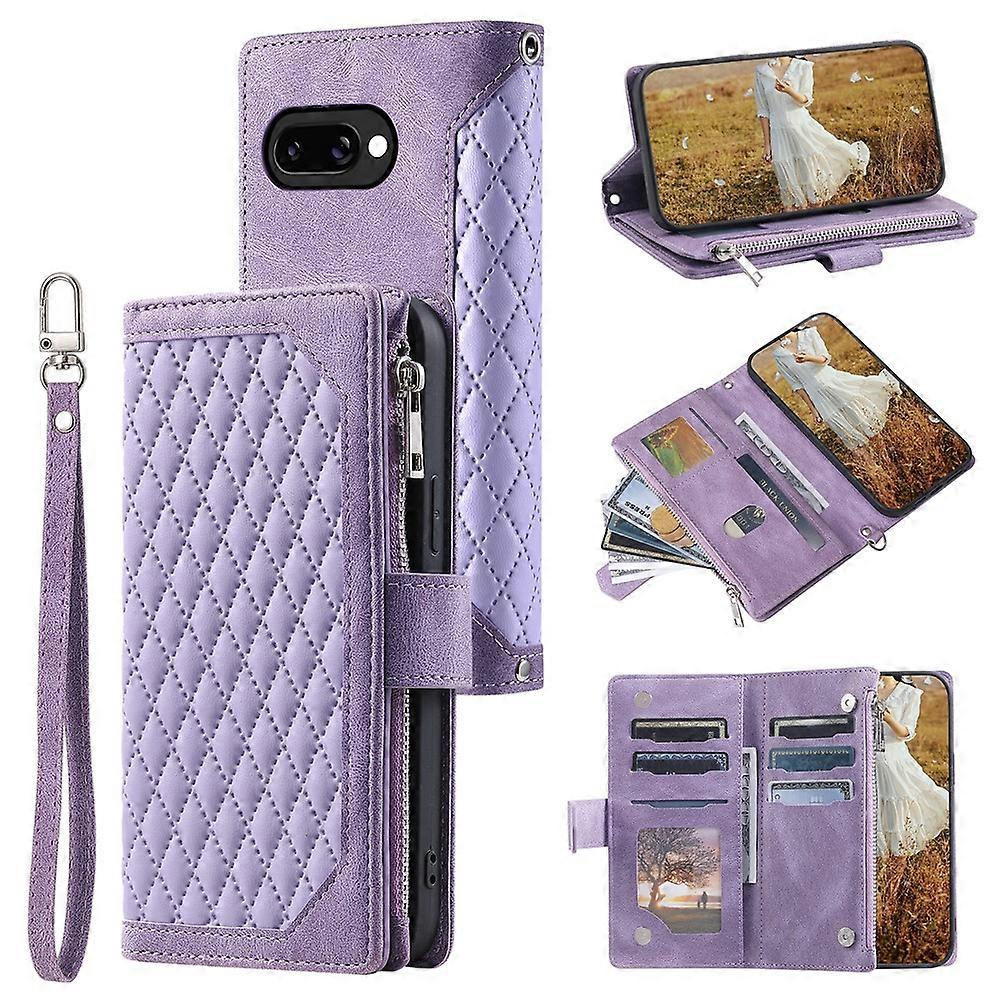 Compatible For Google Pixel 10a Wallet Case Rhombus Stitching Line PU Leather Phone Cover with Wrist Strap