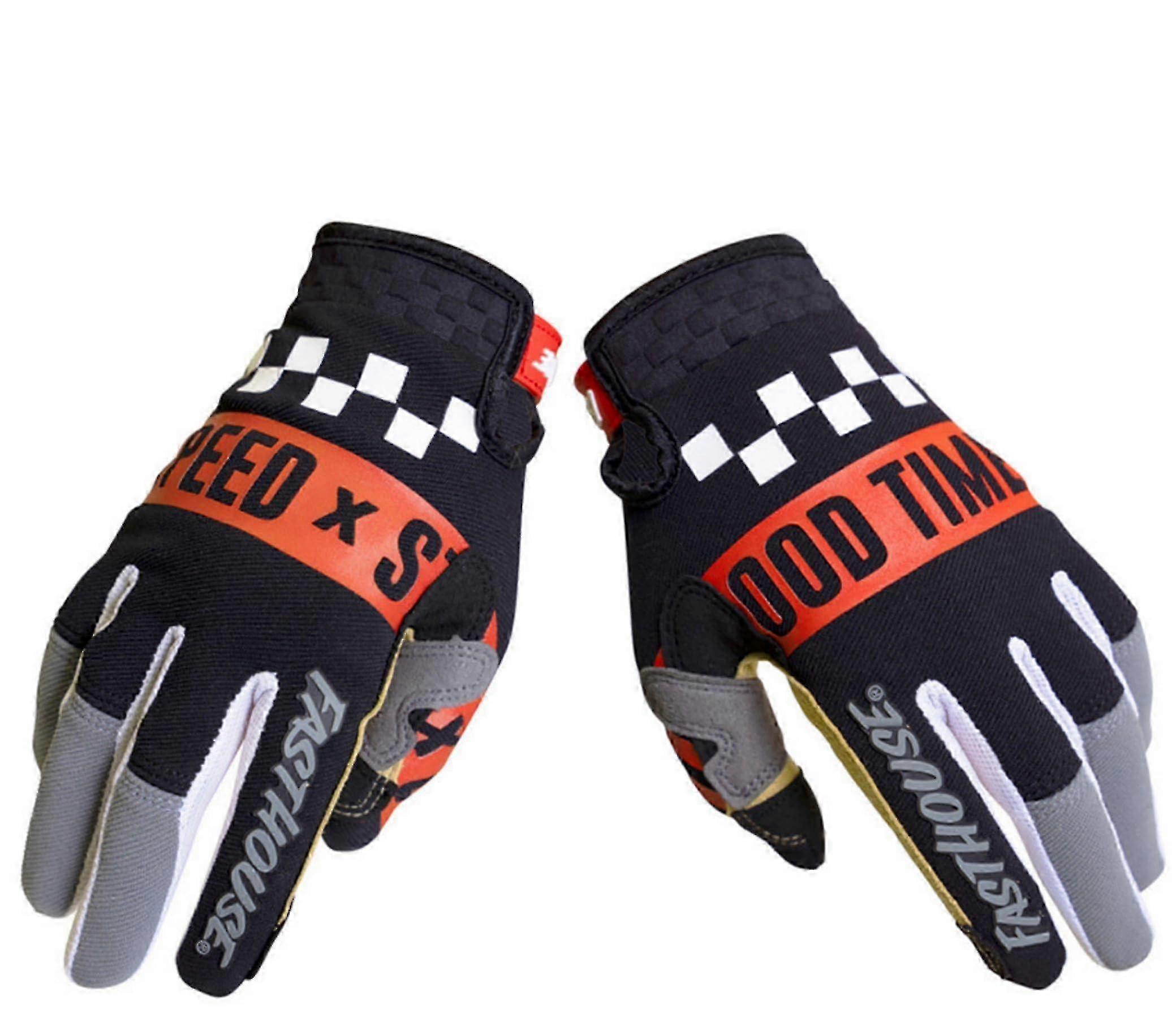 m Bicycle Gloves Checkerboard Grid Motorcycle Racing MTB Gloves Full Finger Gloves Women's and Mountaineering (Orange, Size L)