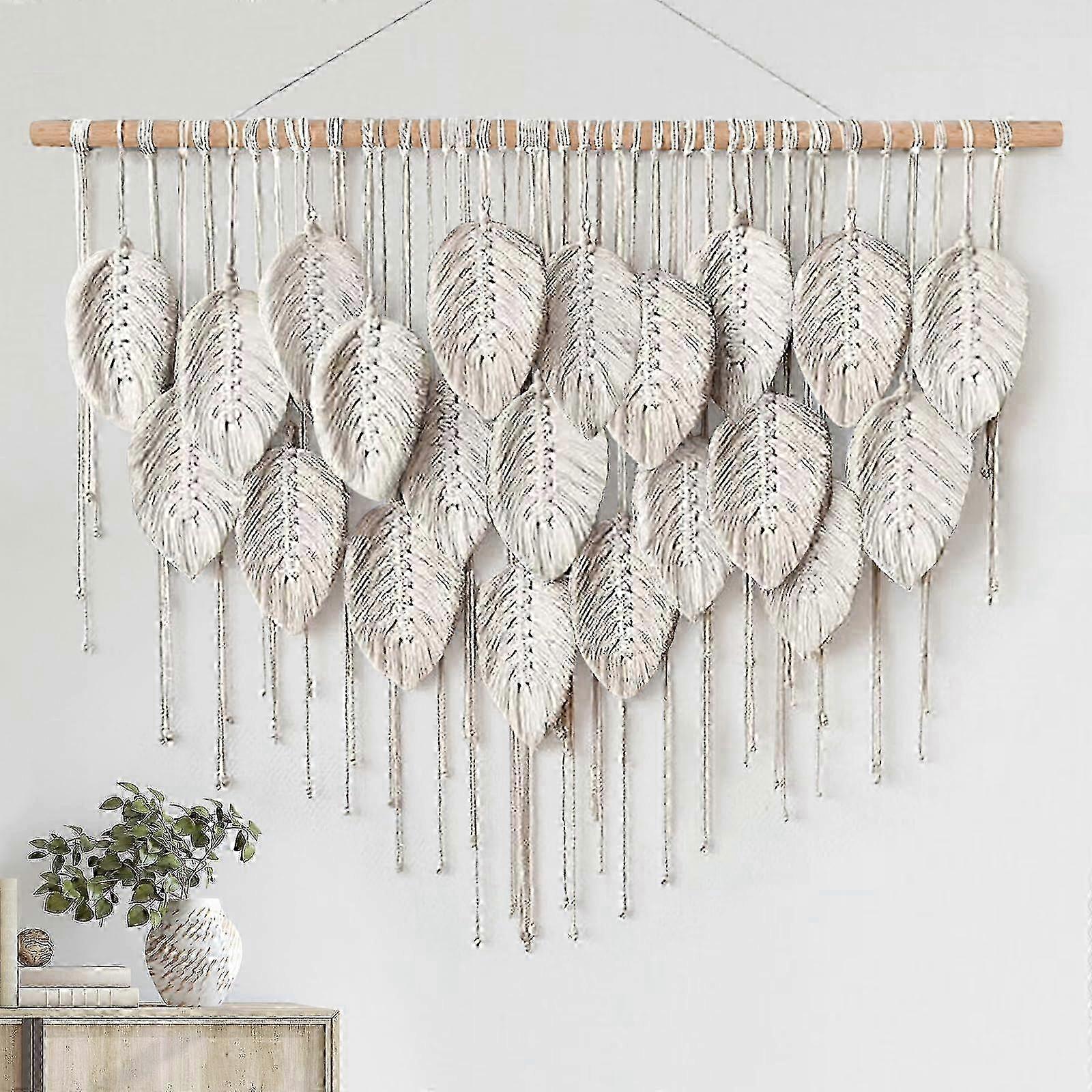m Boho Beige Leaves Tapestry Bohemian Handmade Woven Wall Art Decoration for Bedroom Living Room