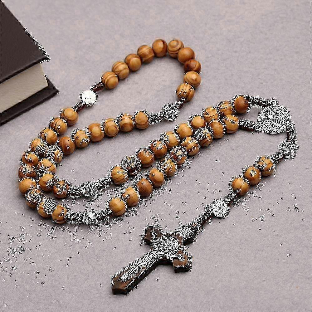 m Olive Wood Rosary Necklace Catholic Rosary Wooden Bead Cross Handmade Rosary Wood Chain Olive Wood Cross Necklace With Flannel Bag For