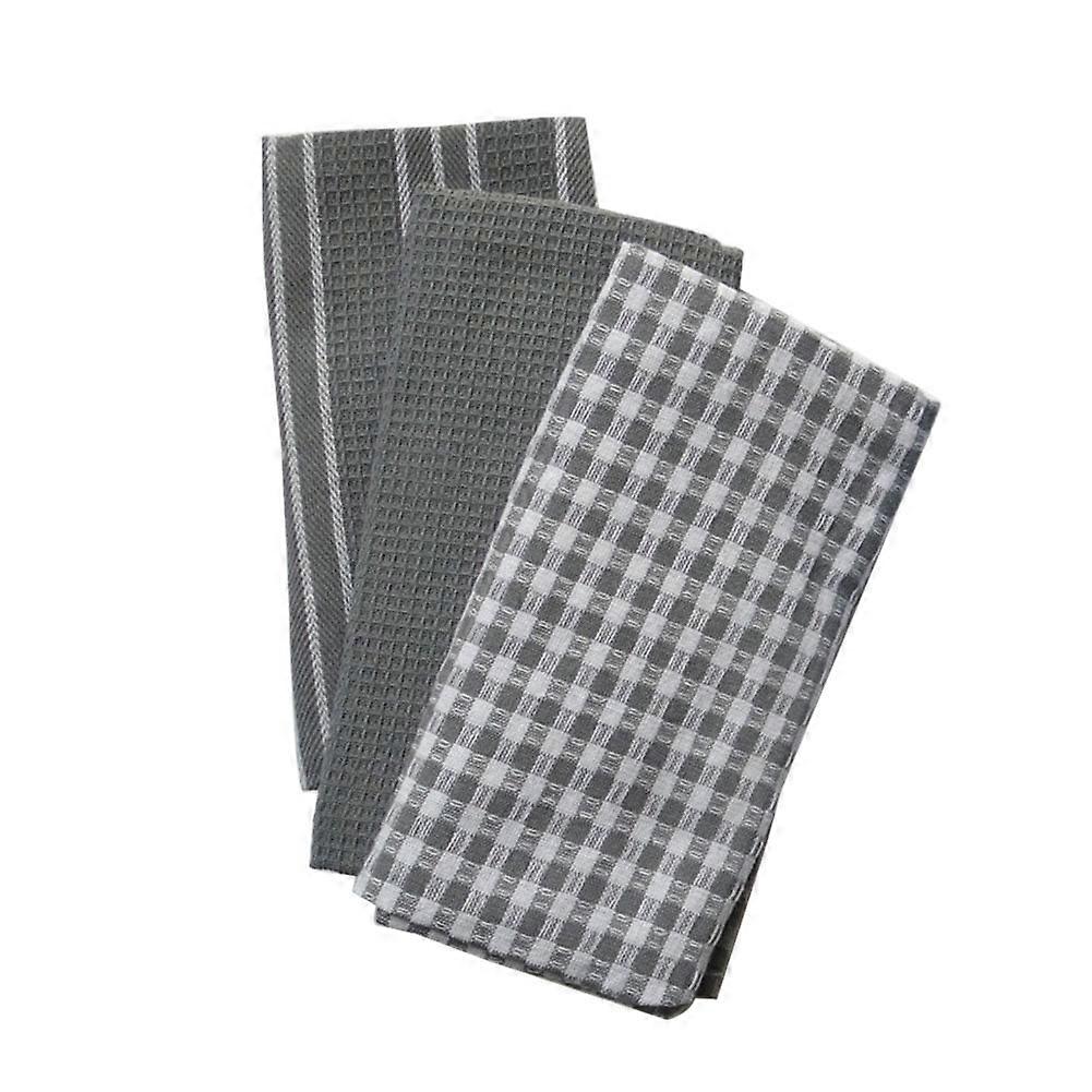 Cotton Kitchen Towels 3pcs, 18"x26" Absorbent Dish Cloths for Drying, Solid Grey - Compatible with Embroidery