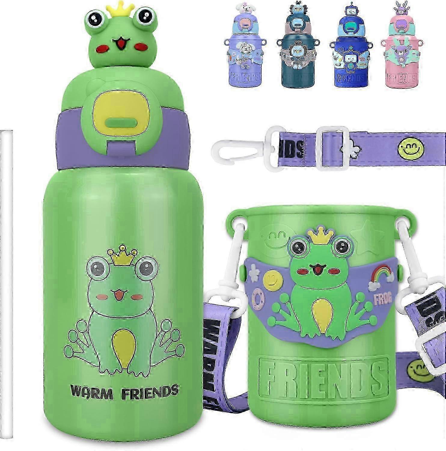 m Kids water bottle with straw lid | with nylon lanyard for girls, boys and toddlers | simple and modern | 450 ml | pink