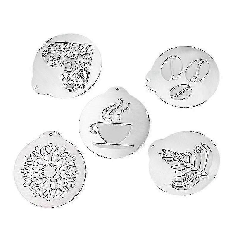 e 5 pcs stainless steel coffee stencils barista cappuccino arts templates coffee garland mould cake decorating tool