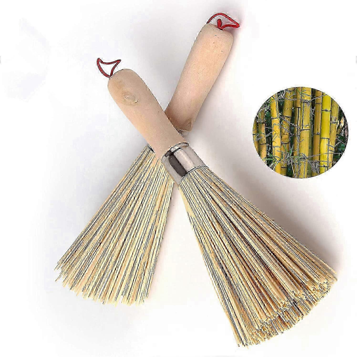 e 2-pack traditional natural bamboo wok brush, kitchen cleaning brush, bamboo kitchen pot brush