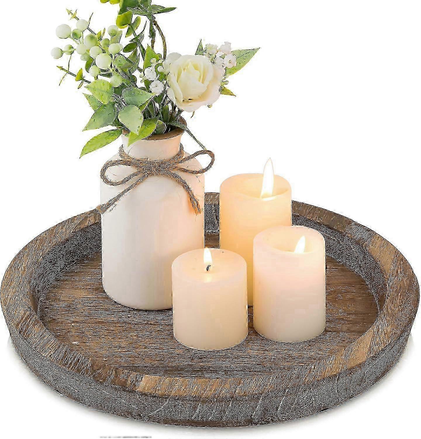 e Candlestick Tray Round Wooden Decorative Coffee Tray Home Furnishings