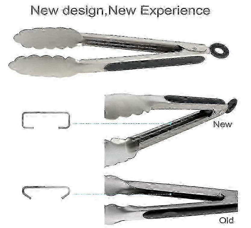 e Stainless Steel Kitchen Tongs, 2 Pieces, Lockable Metal Tongs, Non-slip Handle