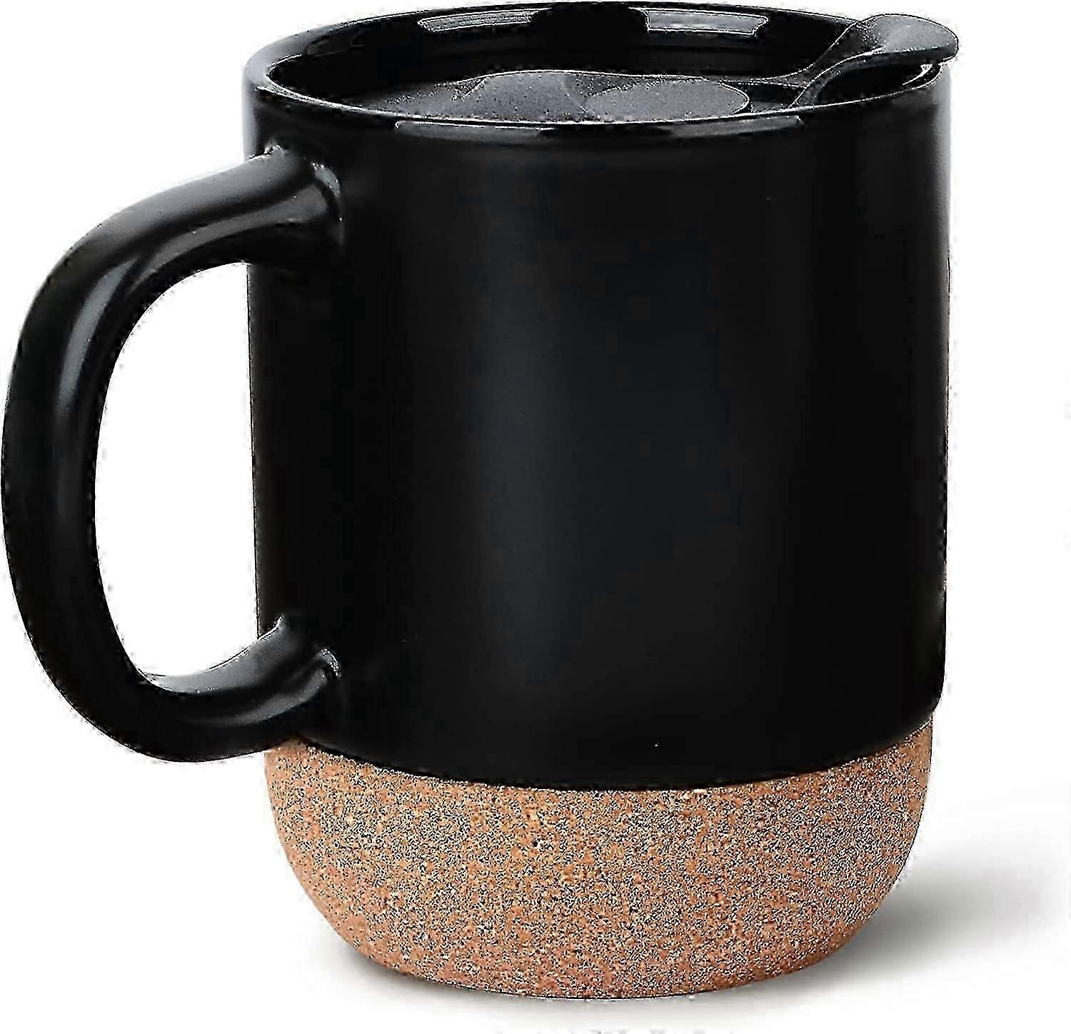 e Black Coffee Cork Mug - Anti Spill 12 Oz Travel Coffee Mug with Handle Matte Ceramic Coffee Mug Cup Tea Cup with Insulated Cork Bottom