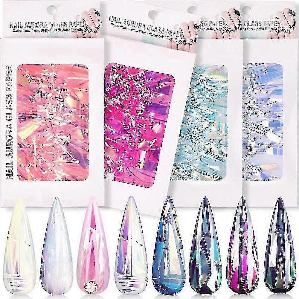 e 4 Boxes Holographic Glass Nail Paper Sticker Gradient Aurora Transfer Foils Shinning Mirror Wraps Holographic Nail Art