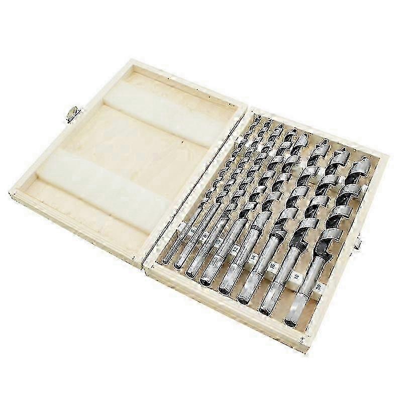 e 8Pcs Spiral Drill Bit Set Carbon Steel Hex with Wooden Case