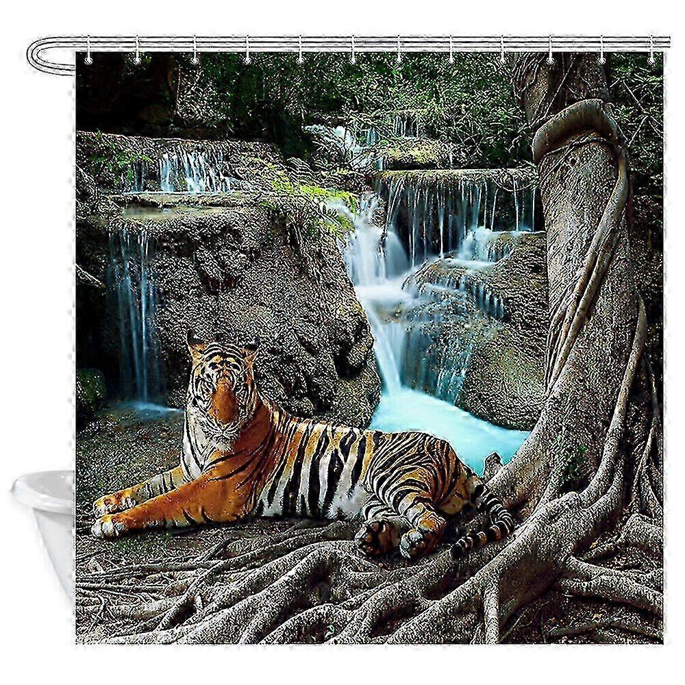 e Tigers Waterfall Forest Fabric Shower Curtain Waterproof Bathroom Decor W/ Hooks
