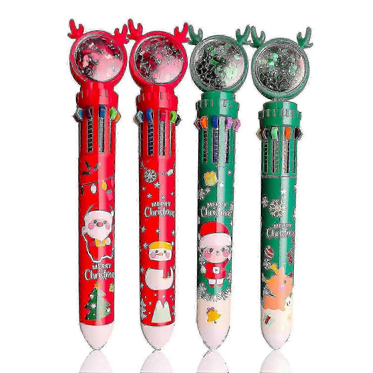 Multicolor Mark Pen: The 10-in-1 pens can write with different colors and the colors include black, blue, red, orange, green and purple, useful and for students, children, office workers to mark or draw.Design: The 0.5mm tip provides a bright, solid line that is not too thick.10 colors can be switched quickly and , giving you a special when taking notes. Writing is comfortable and .Christmas Decors: Designed with classic Christmas pattern such as , and Christmas , these Christmas ballpoint pens are eye-catching and practical, it can be used as to a joyous atmosphere.Pefect Gifts: These Christmas pens can be adorable Christmas gifts for your kids and students, accompanying them to spend a joyful Christmas.Package: Includes 1 pc Christmas retractable ballpoint pens, wonderful accessories for writing, studying or working, delicate gifts for yourself, or other special ones.Colour:As shownMaterial:plasticPackage Contents:4 x multicolored pensOnly the above package content, other products are not included.Note: Light reflection and different displays may cause the color of the item in the picture a little different from the real thing. The measurement allowed error is 1-3cm. Note: Due to the light and screen setting difference, the item's color may be slightly different from the pictures. Please allow slight dimension difference due to different manual measurement.