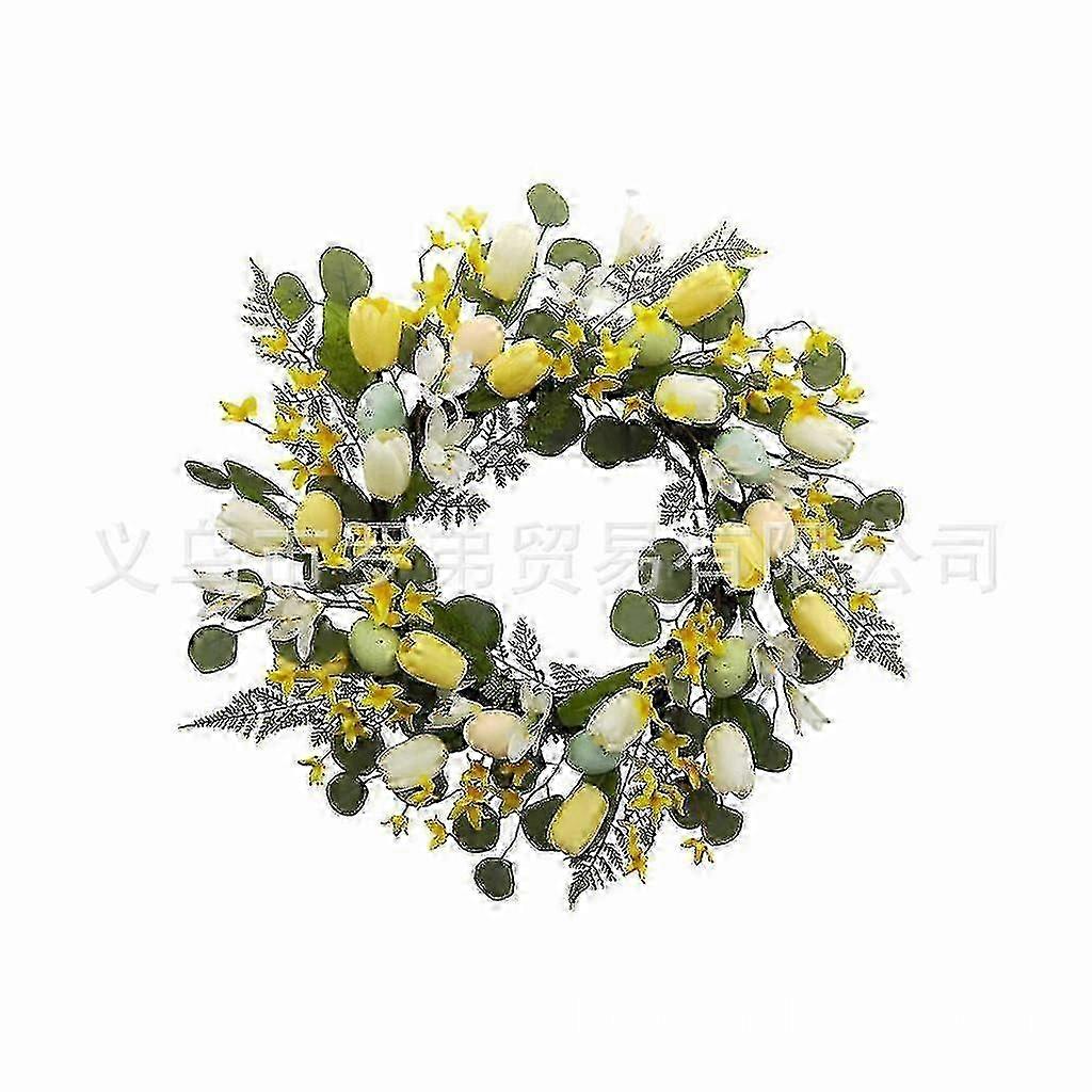 e Nouveau lapin de Pâques Couronne Porte d’entrée Décoration de printemps Suspendu Couronne de fleurs artificielles Décoration de fête à