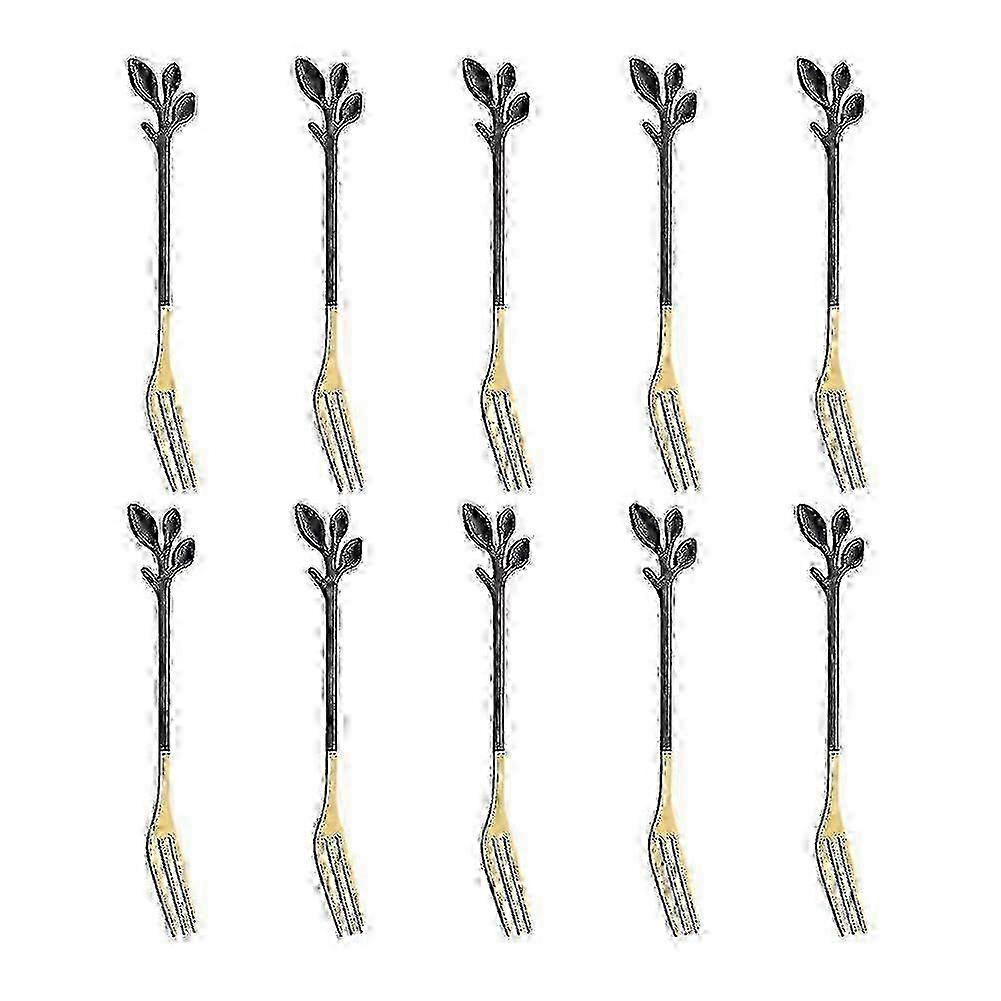 e 10 Pcs Tasting Dessert Forks Stainless Steel Leaf Appetizer Forkfruit Fork, Dishwasher Safe Black G, Happy Hehe Ma