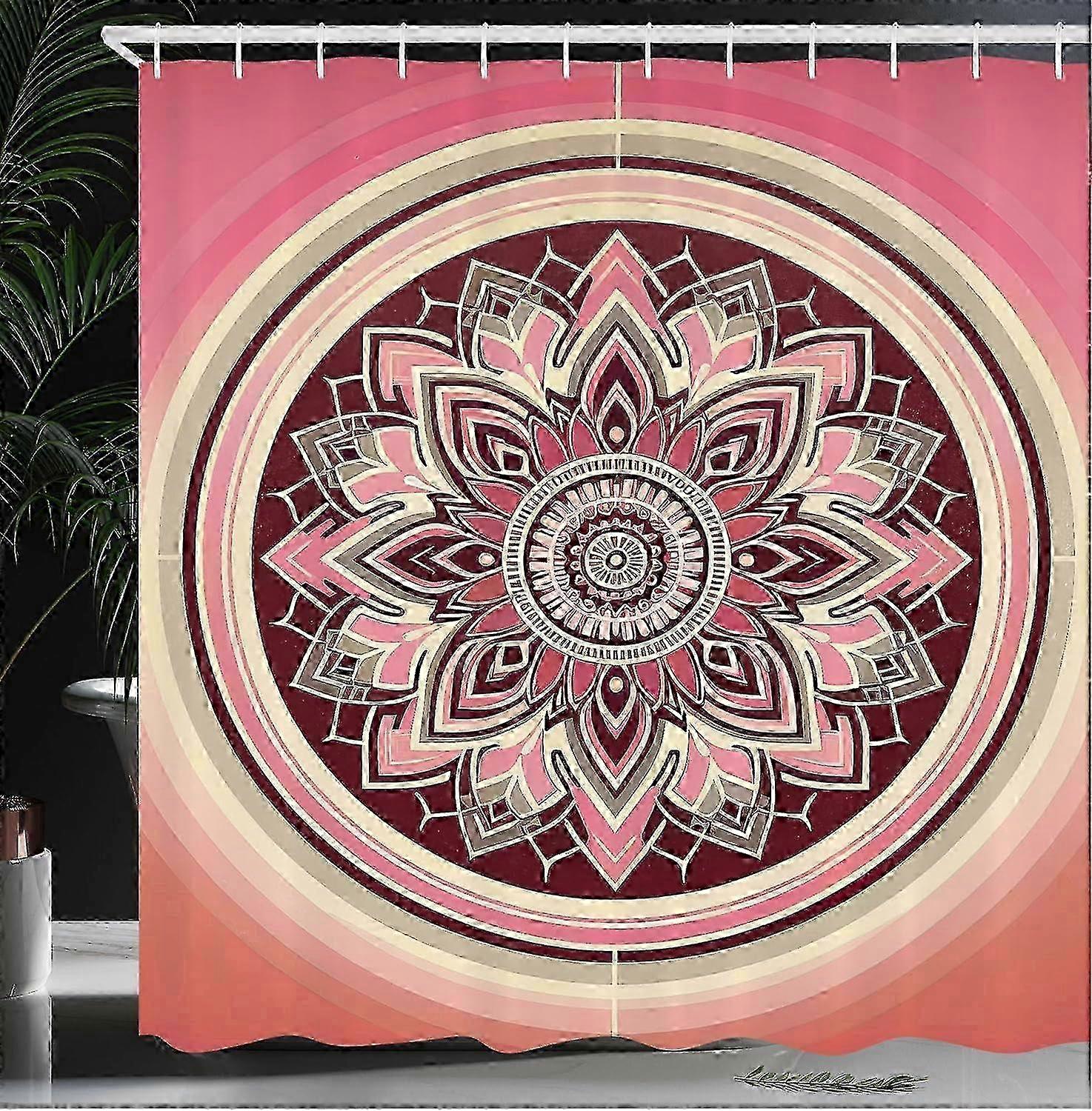 e Pink Shower Curtain, Bohemian Mandala Composition Retrospective Circles and Lines Mid Century Modern, Cloth Fabric Bathroom Decor Set