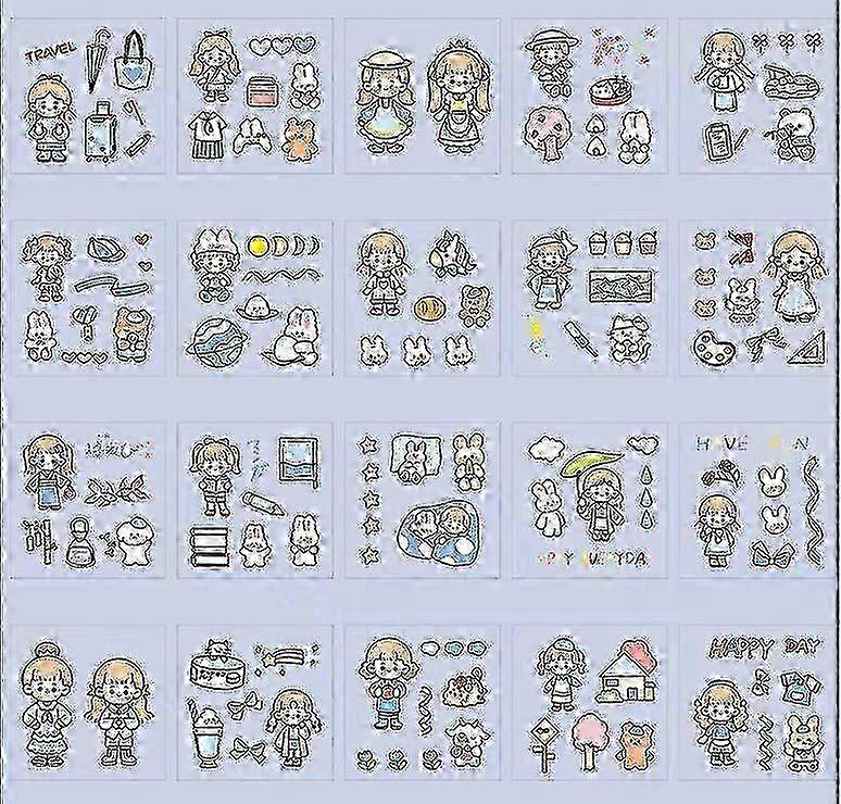 e (blue + dark blue) 40 sheets Macri Ri series sticker cartoon cute girl character hand account decoration sticker