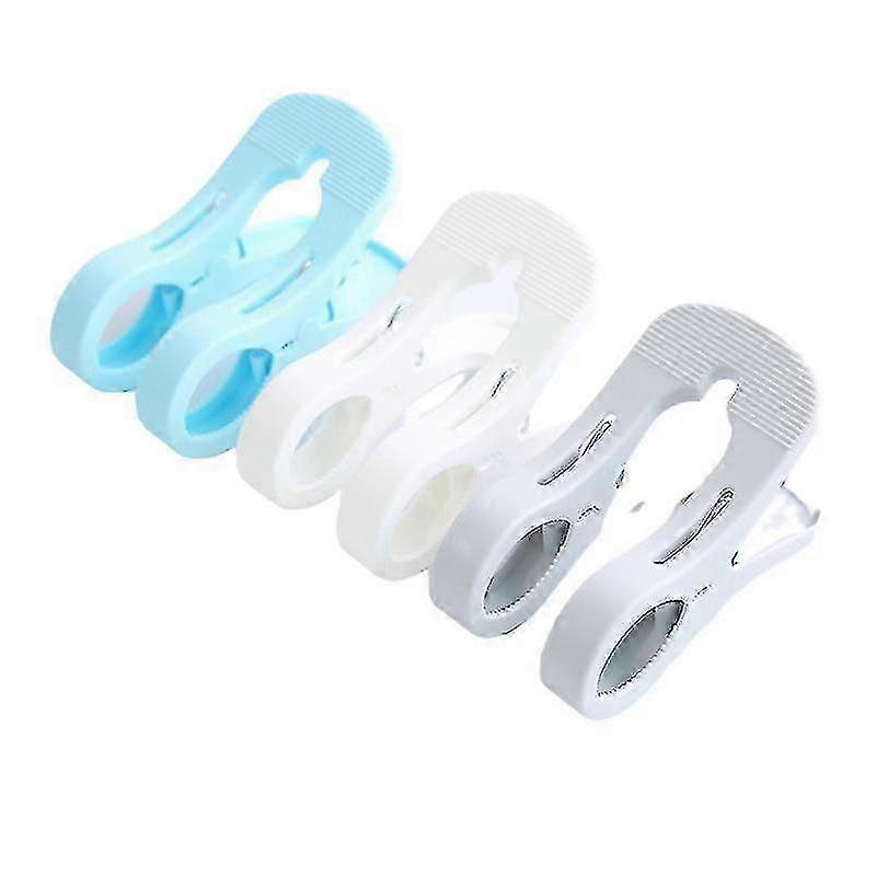 Very Strong Spring Coil- large clothes peg Ideal for tightening and holding your quilt, duvet cover, curtains or clothes to prevent them from falling off the hanger on a windy day No Sharp Edge- Large Clothespin To prevent damage to clothes Large Size- Can hold heavy items like carpets and quilts, sort clean clothes into the cupboard Multi-Function- Can clip the canvas to a frame, hold a tablecloth on the table outside. Ideal for daily life and travelGrayx2 and Whitex2 and Bluex2 Note: Due to the light and screen setting difference, the item's color may be slightly different from the pictures. Please allow slight dimension difference due to different manual measurement.