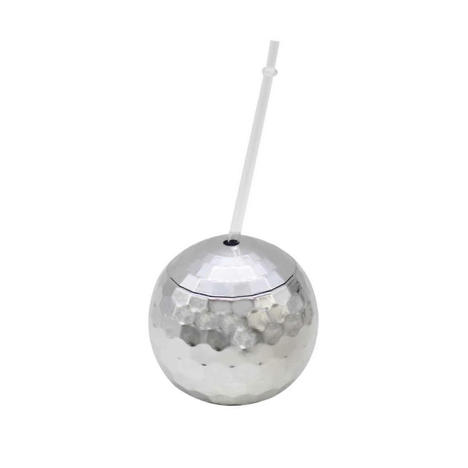 Jacenvly Christmas Lights Outdoor Decorations, 1970s Ball Drink Cup with Straw, Compatible with Metal Shiny Foil Color Party Tableware
