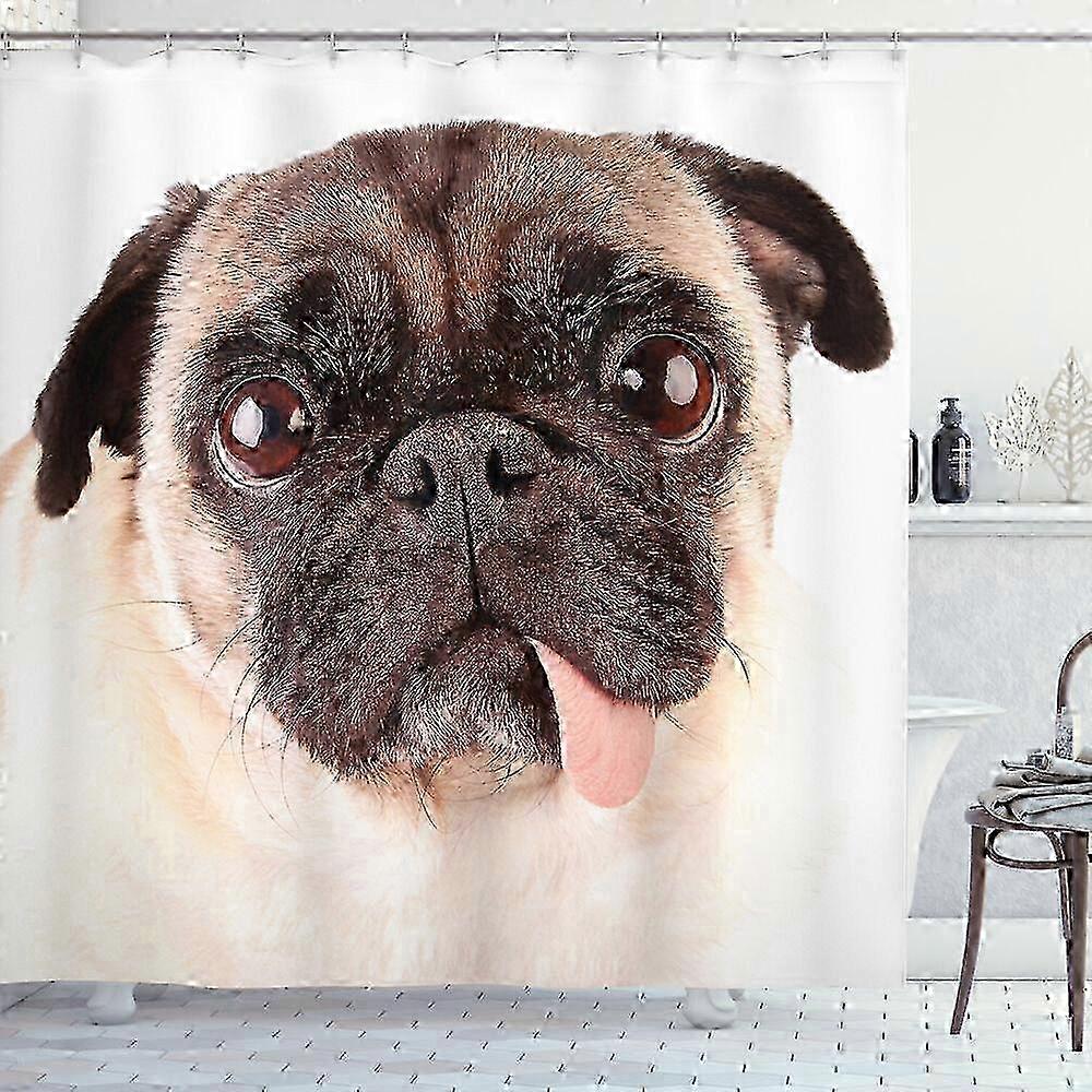 e Pug Shower Curtain Upset Dog Sad Eyed Pet Print for Bathroom