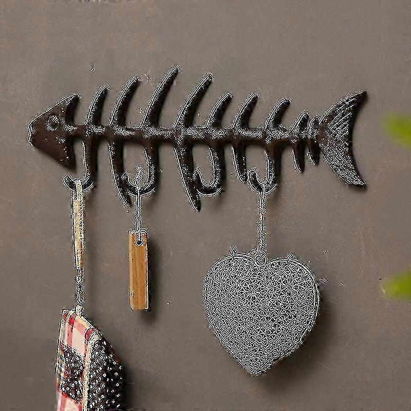 e Decorative Fishbone Wall Mount Towel Rack Stylish Cast Iron Hanger With 4" Fish Hook Rust Brown