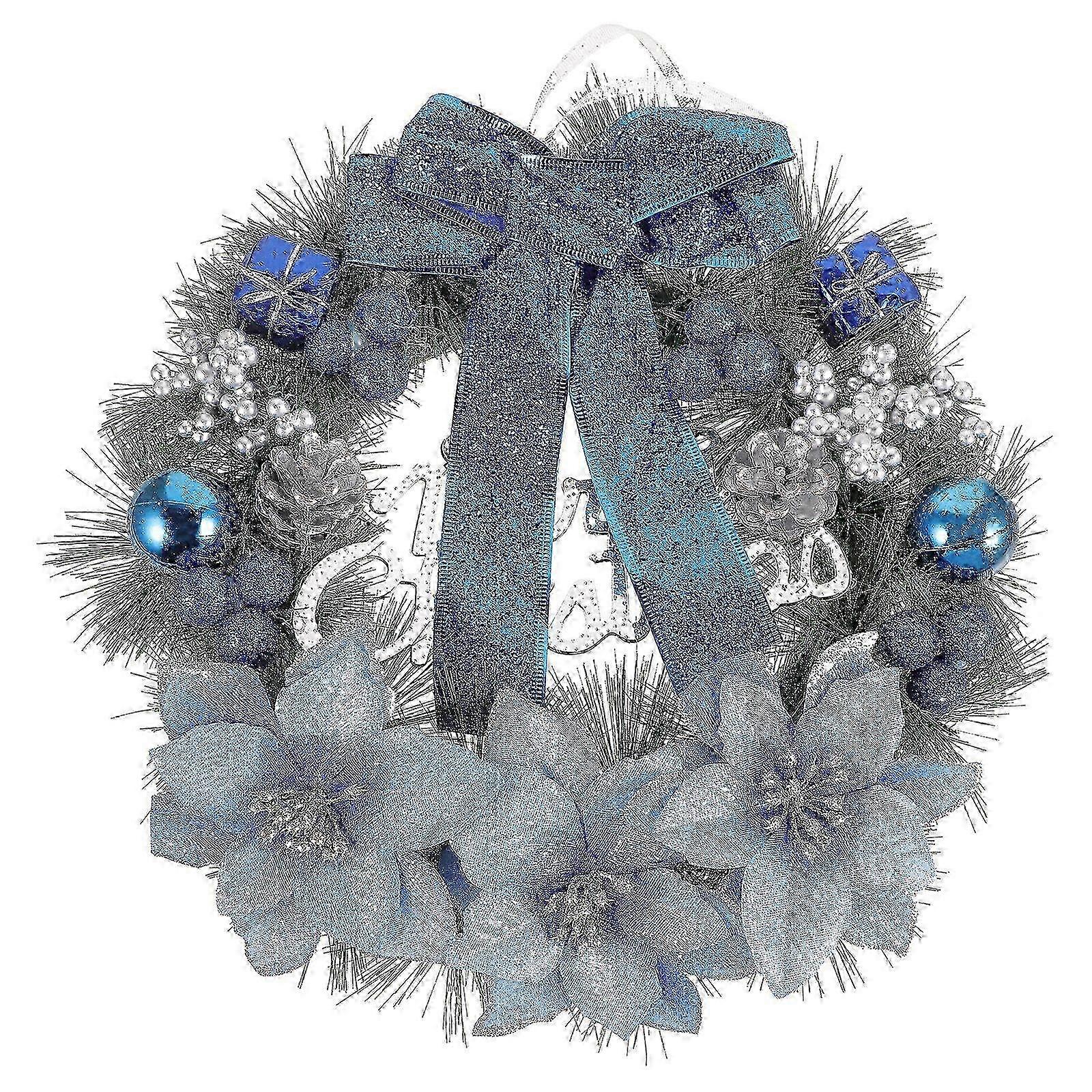 e 30cm Christmas Artificial Pine Wreath Hanging Pendant Decor Wreath for Home Christmas Party Wall Door Window Decor (Blue)