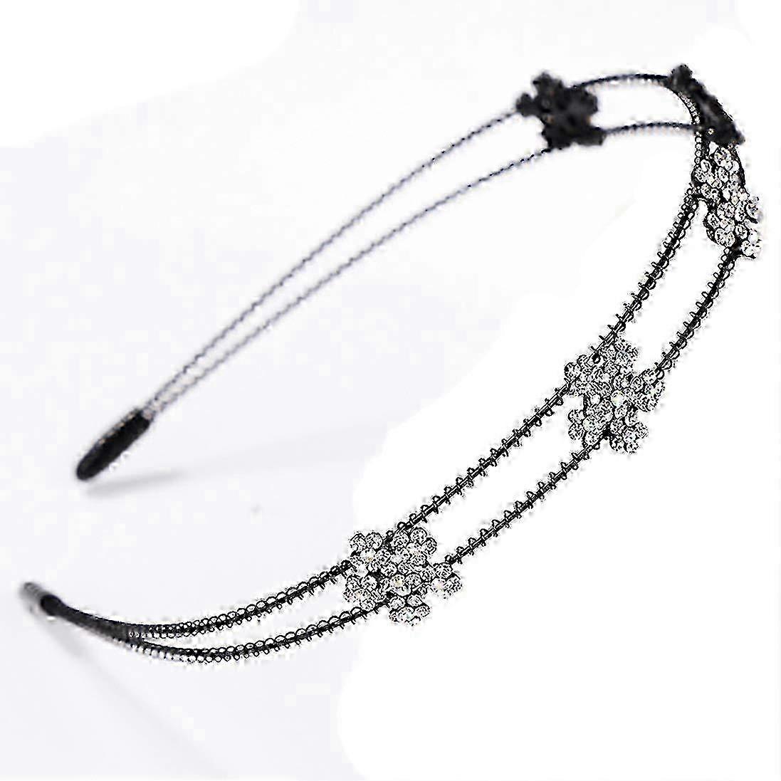 e 1pc Fashion Bridal Rhinestone Crystal Headband Flower Double Layer Metal Hairband Headdress Hair Accessories For Women Girls Hair Deco