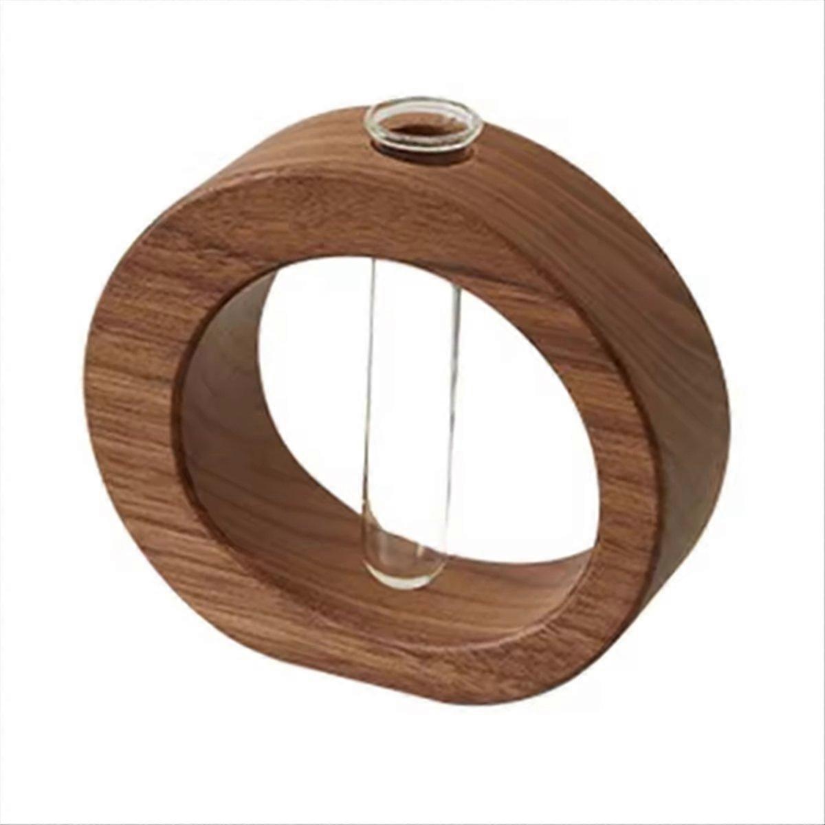 Solid Wood Glass Vase Walnut Wood and Glass Flower Vase Decorative Vases Set,Wooden Vases Flower Pot