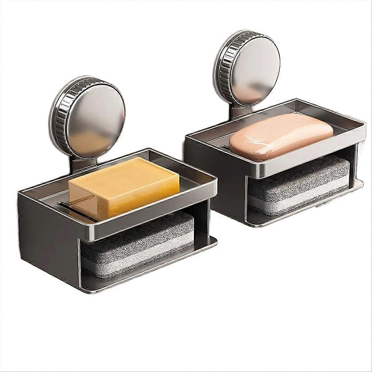 Bathroom Suction Cup Soap Box Wall-Mounted Aluminum Shelf Washroom Soap Box Drain Rack Toilet Washin
