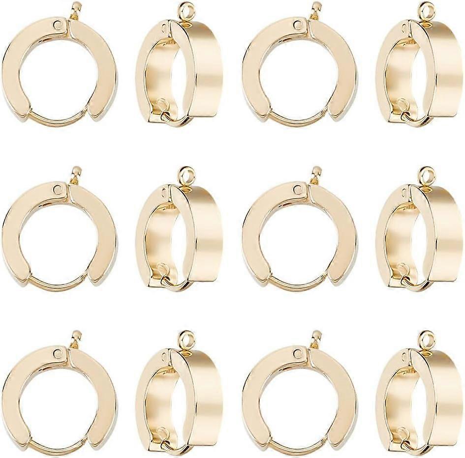 12 Pcs 201 Stainless Steel Huggie Hoop Earrings Findings 15mm Golden, Hypoallergenic Round Rings with Loop for DIY Jewelry Making
