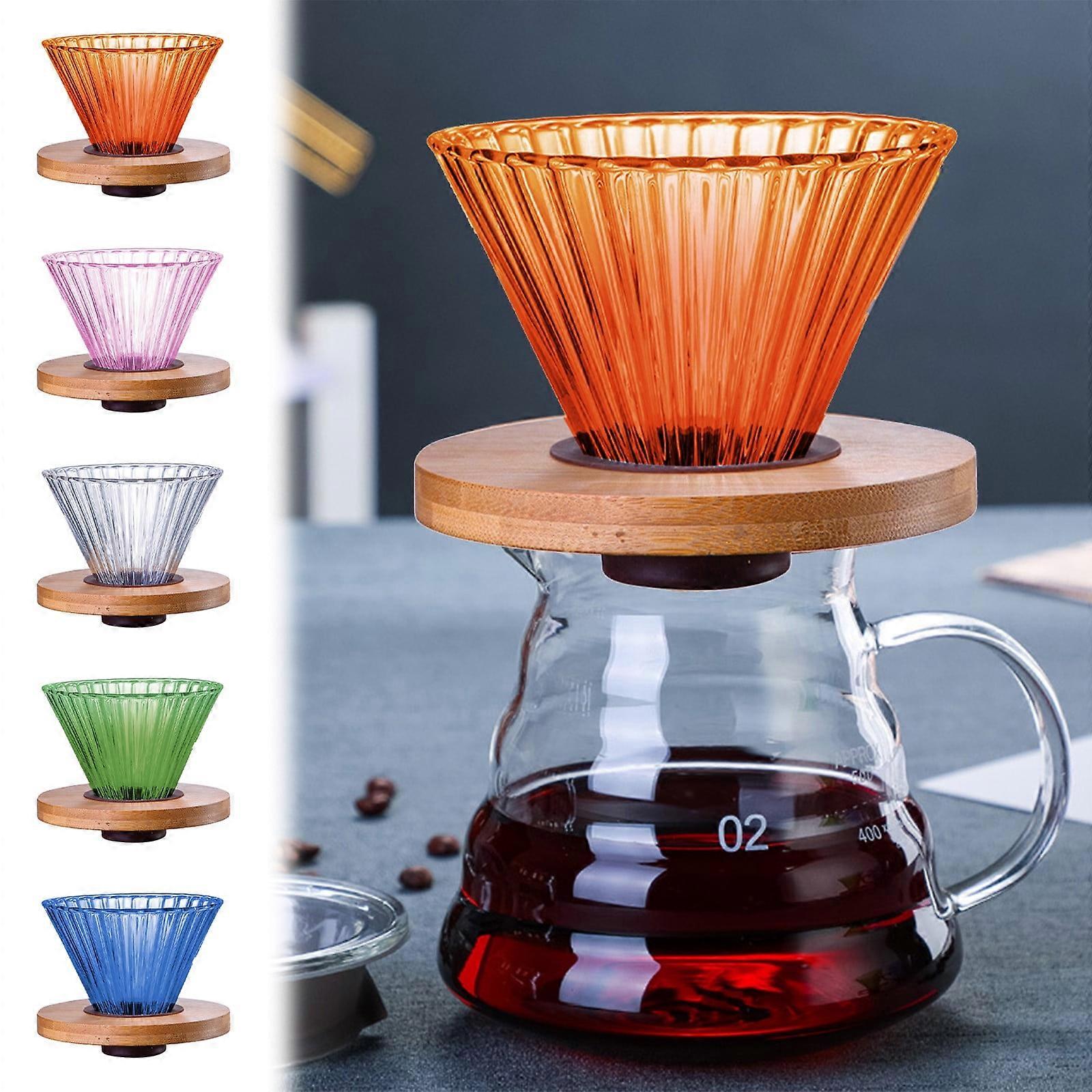 Jacenvly Coffee Colored Glass Filter Mug with Removable Wooden Base, Portable Hand Brewed Drip Reusable Filter, Home & Bathroom Decor