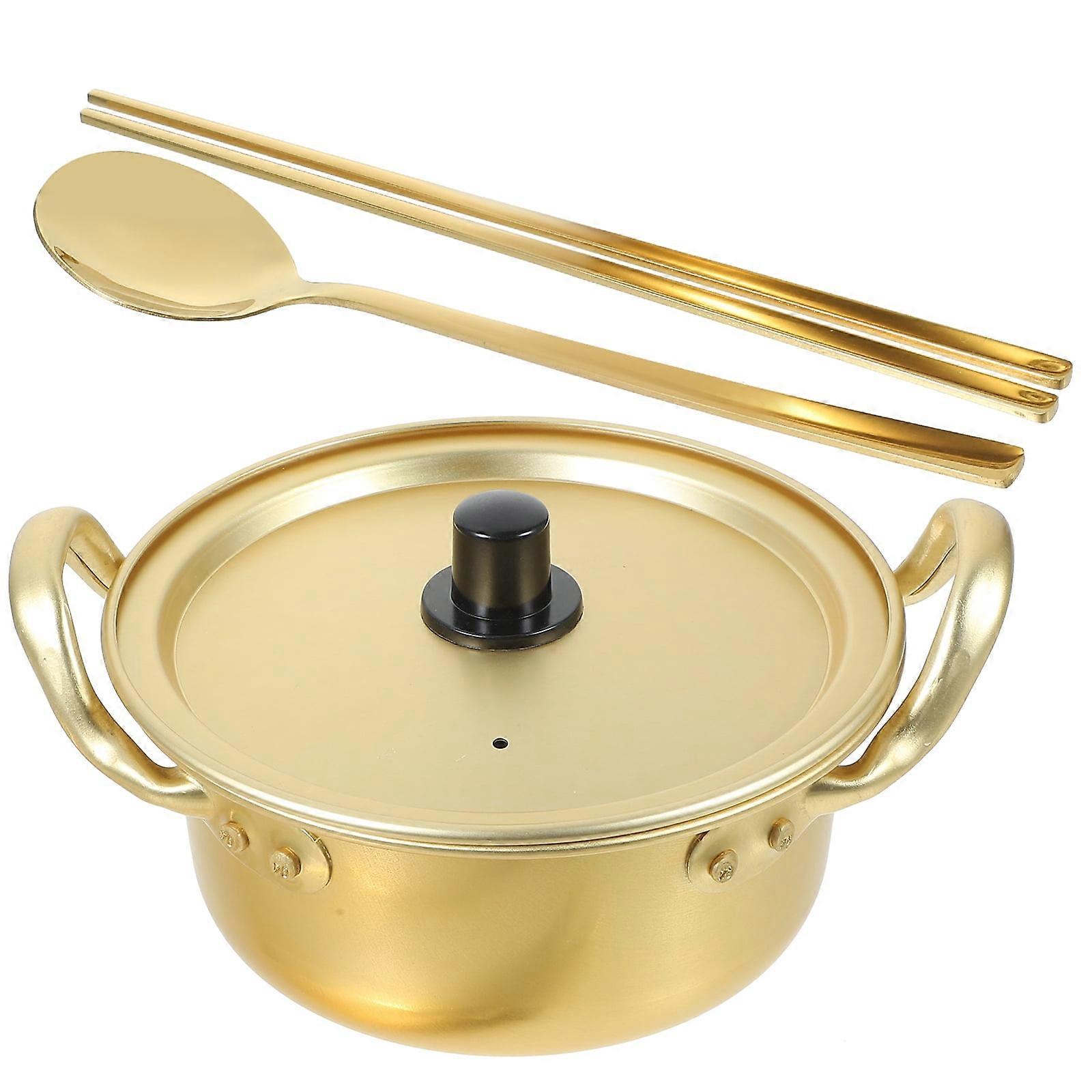 Korean Ramen Pot Ramen Cooker Aluminum Korean Pot Ramyun Pot With Lid Spoon and Chopsticks Cookware for Cooking Soup Pasta Stew Golden 14CM