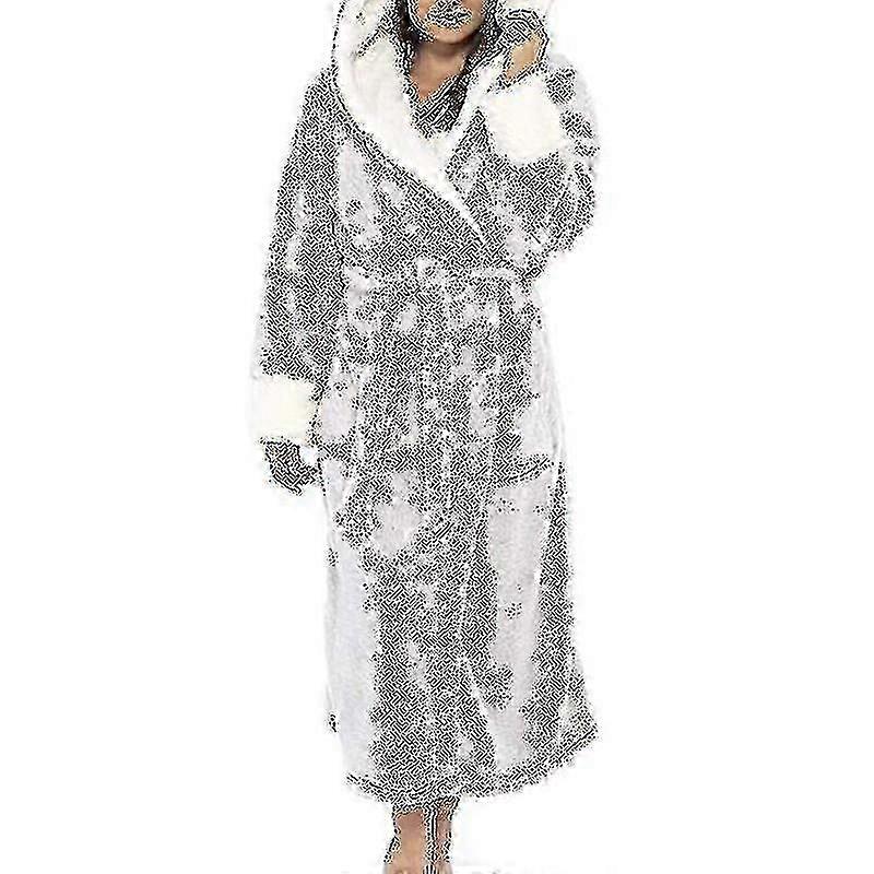 e Sherpa Fleece Bathrobe Women Soft Dressing Gown Hooded Fluffy Towling Bath Robe_y Women
