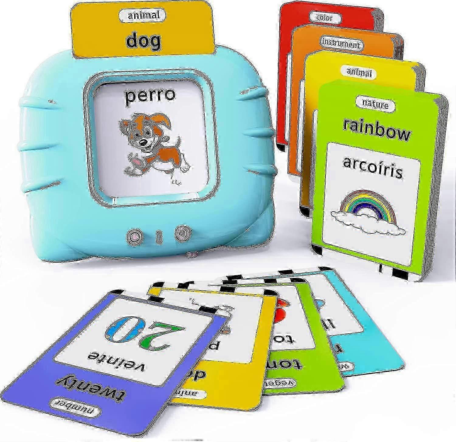 e Spanish And English Bilingual Ble Flash Cards Toy With Music, Learn Spanish And English For Kids, Nias, Nios, Bebes Cyan