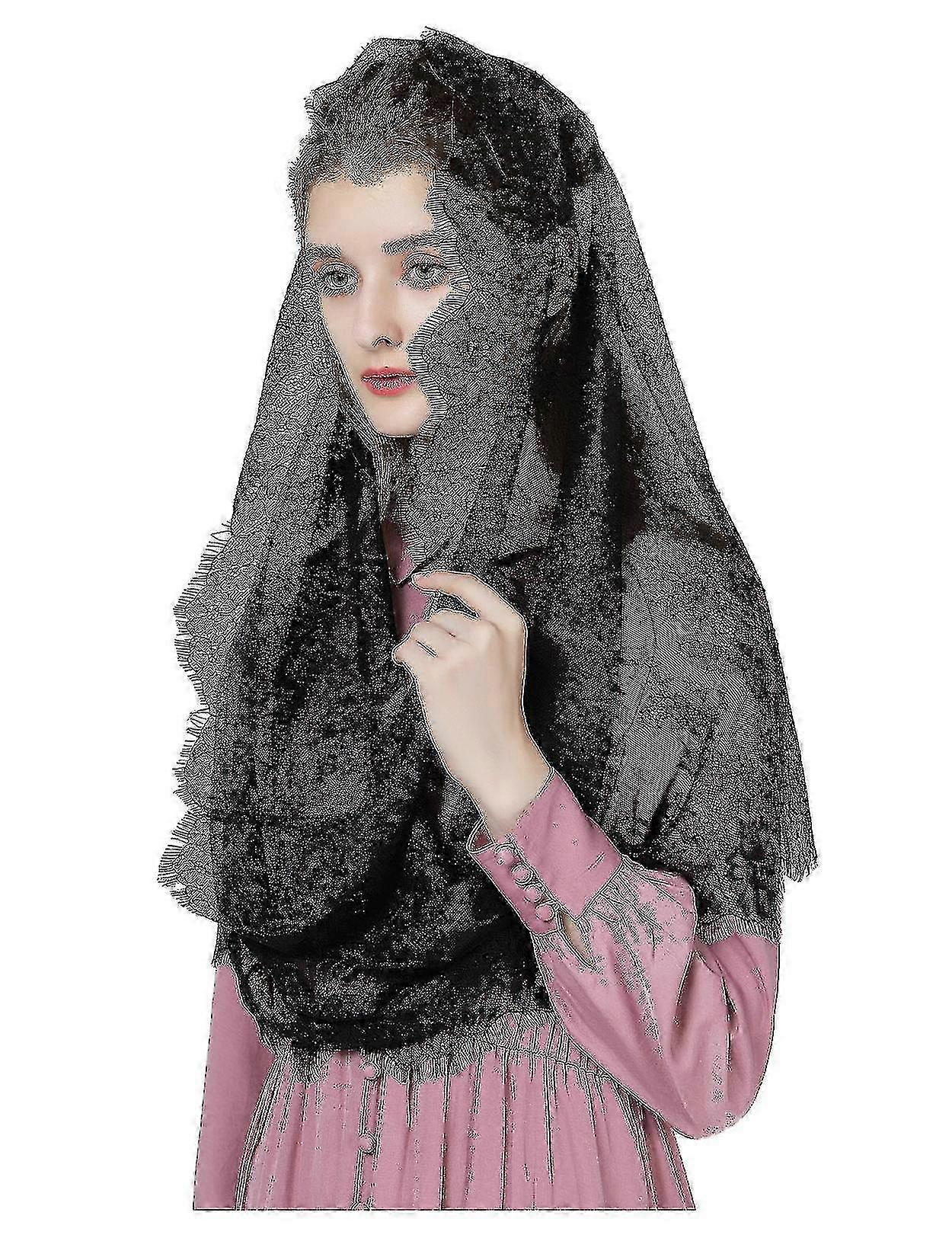 e Infinity Mantilla Veil Catholic Church Latin Mass Holy Communion Religious Ceremony Head Cover Formal Lace Scarf Navy Blue Black V115