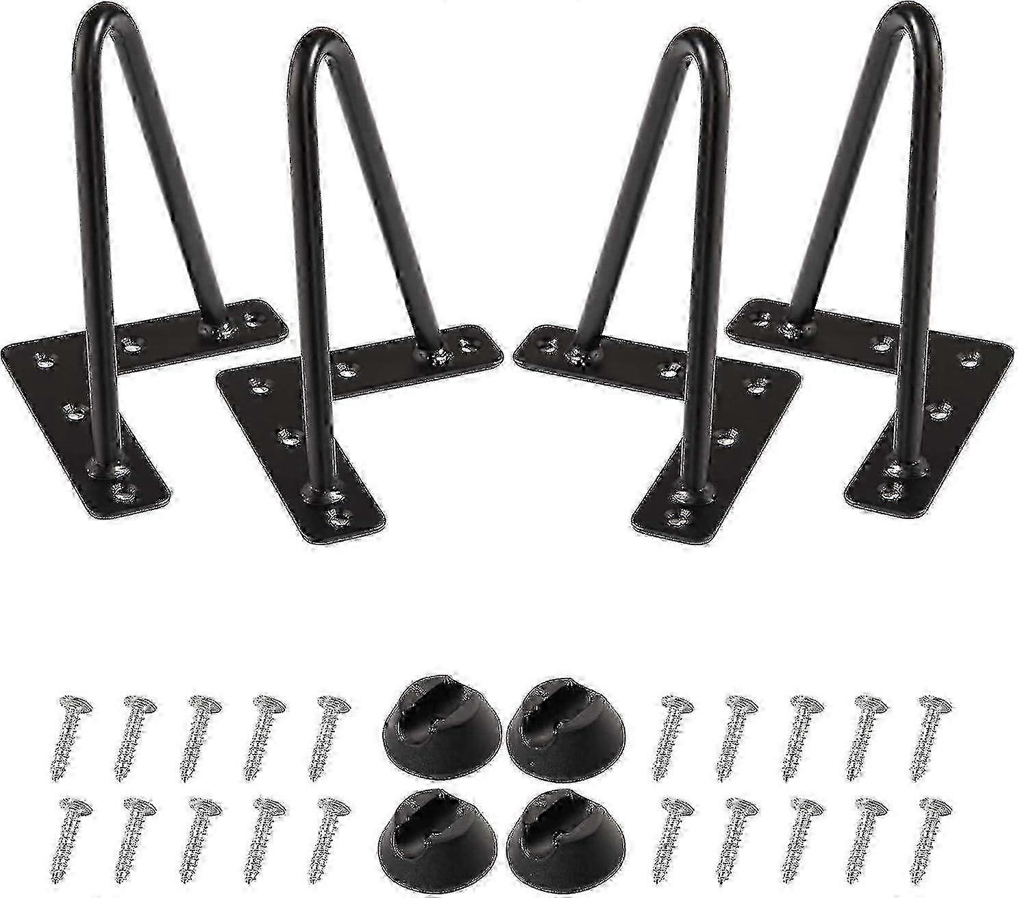Minimalist Design: A sturdy twist on classic mid-century modern style hairpin legs have a classic V shape, simple and natural, rustic industrial style. DIY Projects: Raw steel desk legs, suitable for coffee tables, modern desks, bedside tables, stools and even chairs, etc. Multi-function hairpin legs. Robust: sturdy 10mm cold rolled iron table legs, for a very sturdy functional table, solid and sturdy construction. Easy installation: Pre-drilled holes in each leg for easy and convenient installation into the mounting plate. Features: Metal table leg made of durable and premium raw steel, size 15cm, diameter 10mm, black stained. Note: Due to the light and screen setting difference, the item's color may be slightly different from the pictures. Please allow slight dimension difference due to different manual measurement.