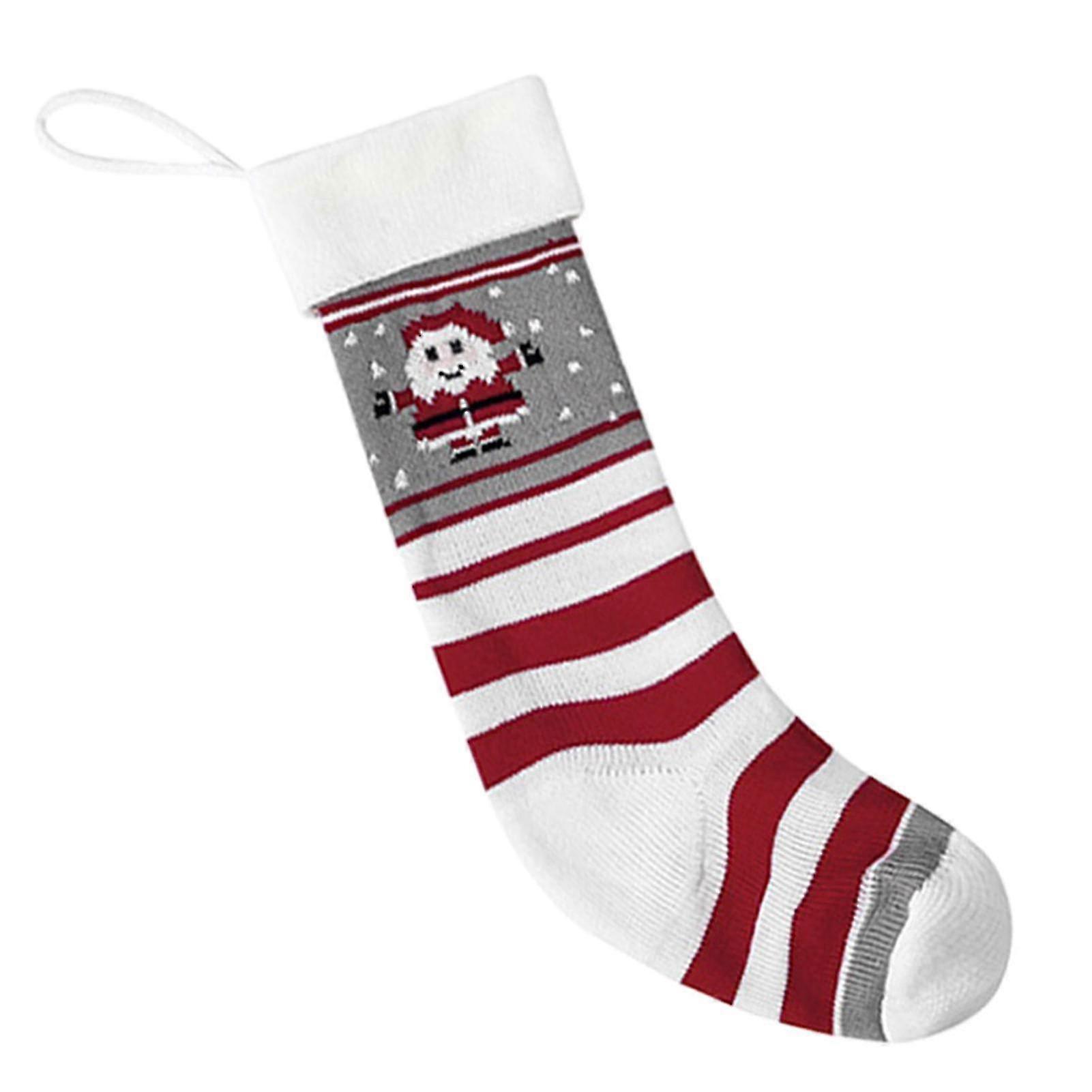 e Christmas Gift Bag Knitting Large Size Wide Opening Striped Reusable Scene Layout Tear-resistant Hanging Xmas Tree Santa Snowmen Elk D