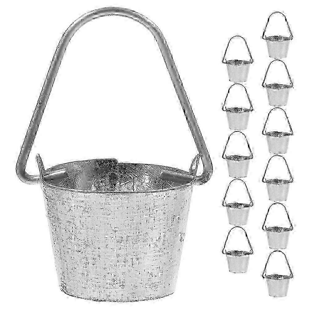 e 12Pcs Miniature Water Bucket Decor Doll House Iron Bucket Miniature Barrel Model Garden Decoration
