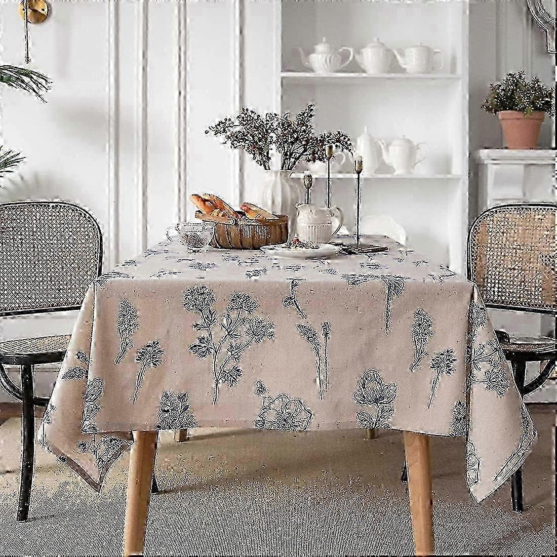 e Country Style Floral Printed Tablecloth Cotton Linen Botanical Pattern Dust-Proof Table Cover for Kitchen Dinning Tabletop Decoration