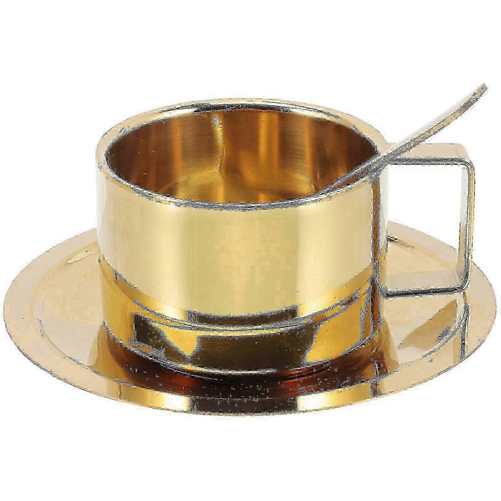 e 1 set of Coffee Mug Stainless Steel Coffee Mug Cup Spoon Saucer Office Cup