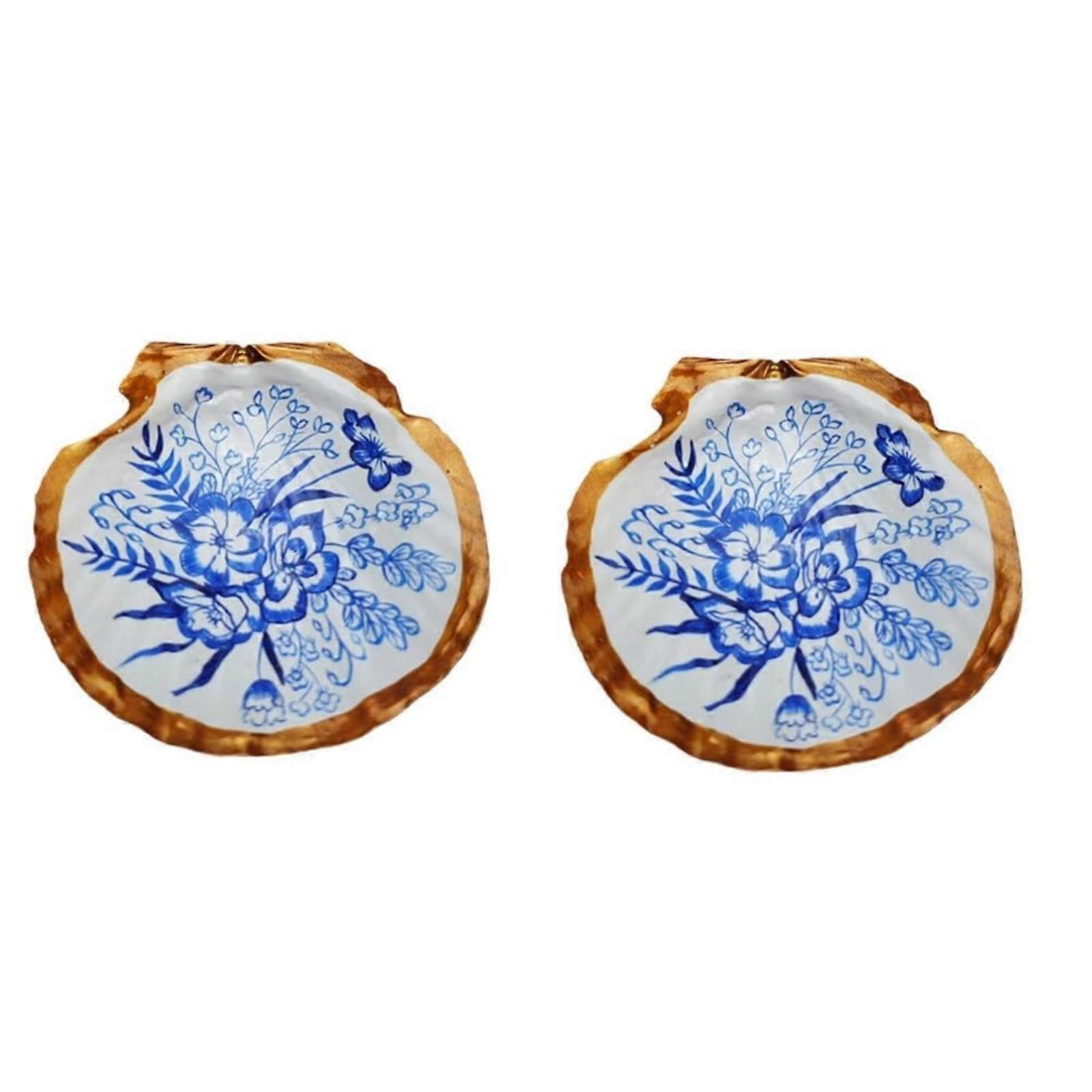 Clearance Miayilima Scallop Trinket Dish, Blue Floral Chinoiserie Decor, Jewelry Holder & Beach Art Craft – Compatible with Millennial Home Decor