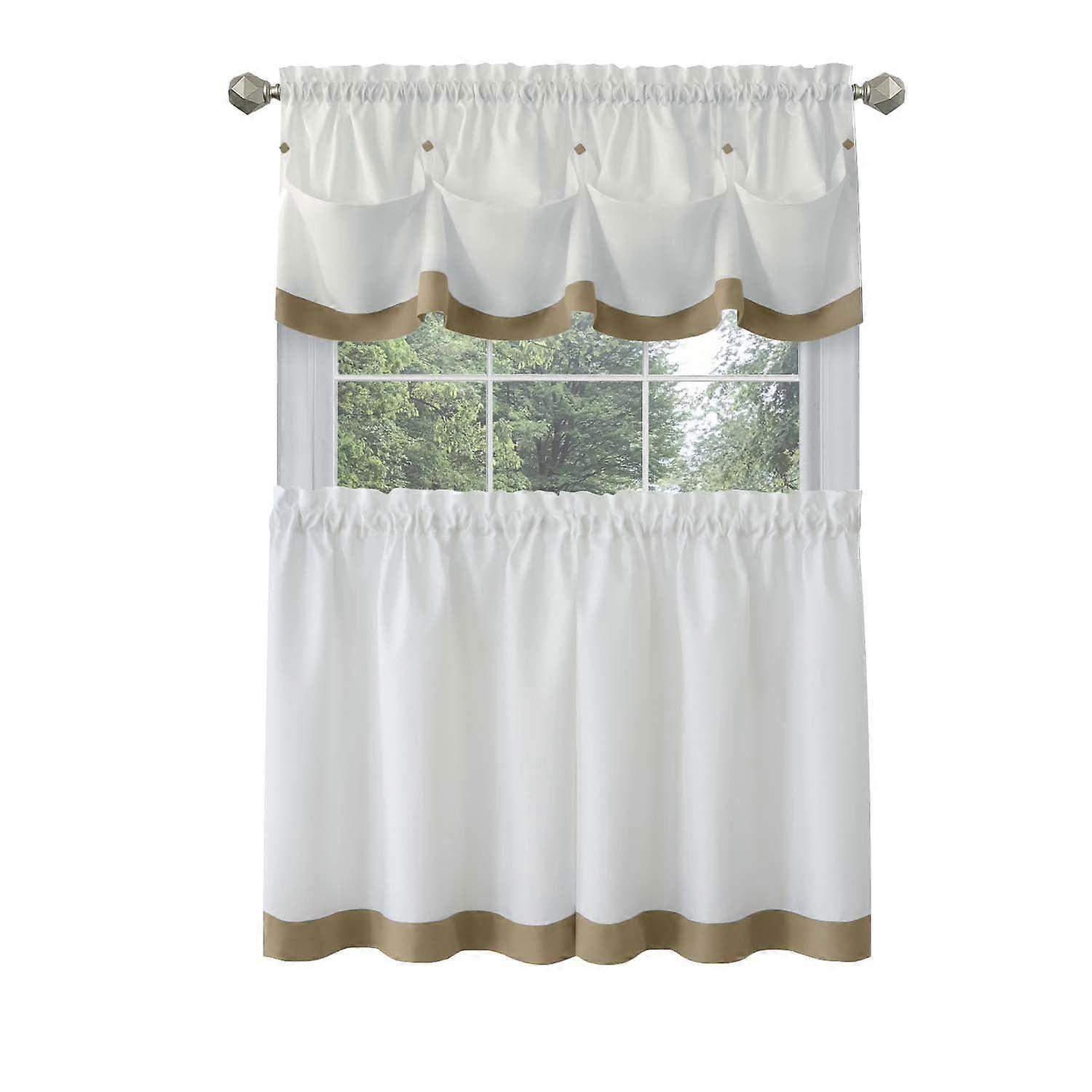 Achim Lana Indoor Polyester Light Filtering Solid Tier & Valance, Tan, 58-in W x 24-in L