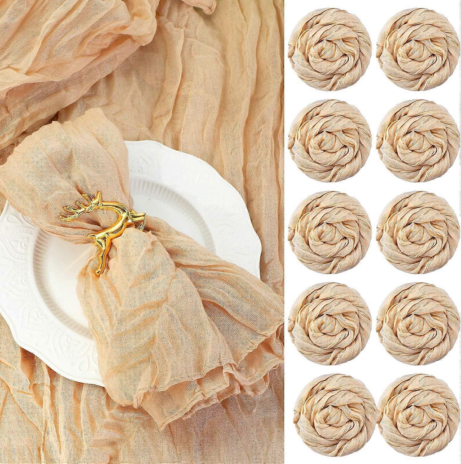 10Pcs 20x20in Wrinkled Gauze Napkins (Camel) for Wedding, Baby Shower, Birthday, Easter Party Decor, Cheese Cloth Table Napkins