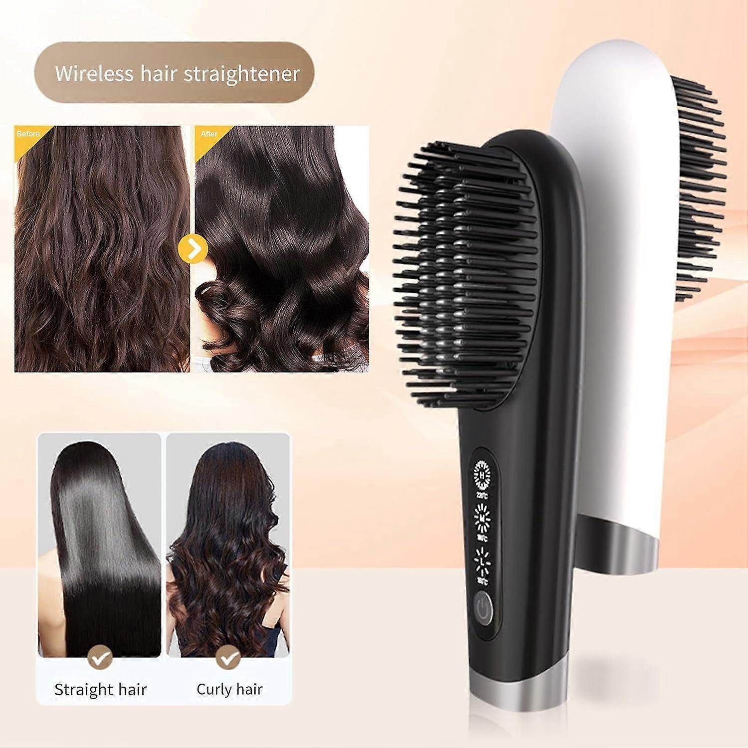 DERCLIVE Hair Straightener Brush, Portable Negative Ionic Cordless Styler with Ceramic Coating, compatible with travel use