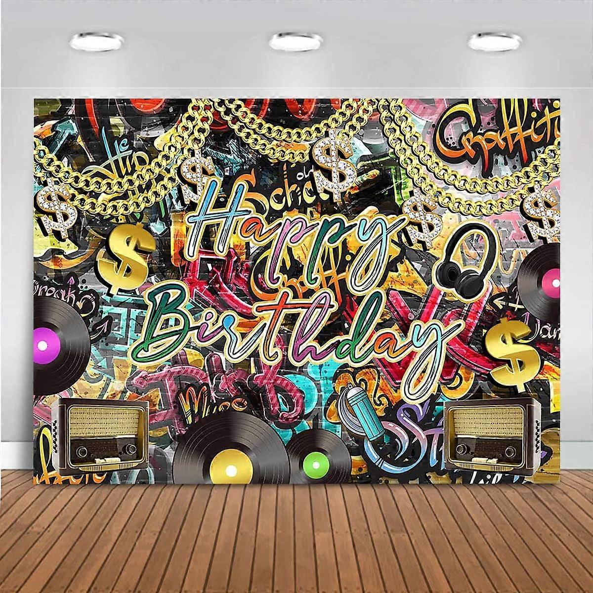 8x6ft Graffiti 80's 90's Birthday Backdrop - Hip Hop, Rock, Punk Party Vinyl Background for Photo Booth, Cake Table Decor & Urban Retro Theme