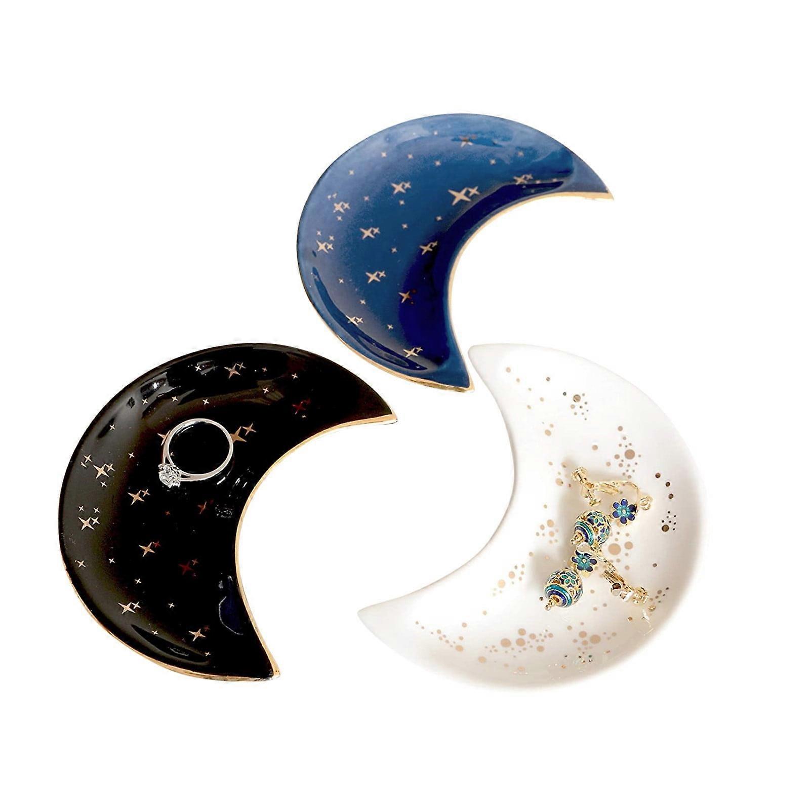 3X Ceramic Storage Tray Compatible with Little Moon, Blue/Black/White, Bubble Bag Packaged